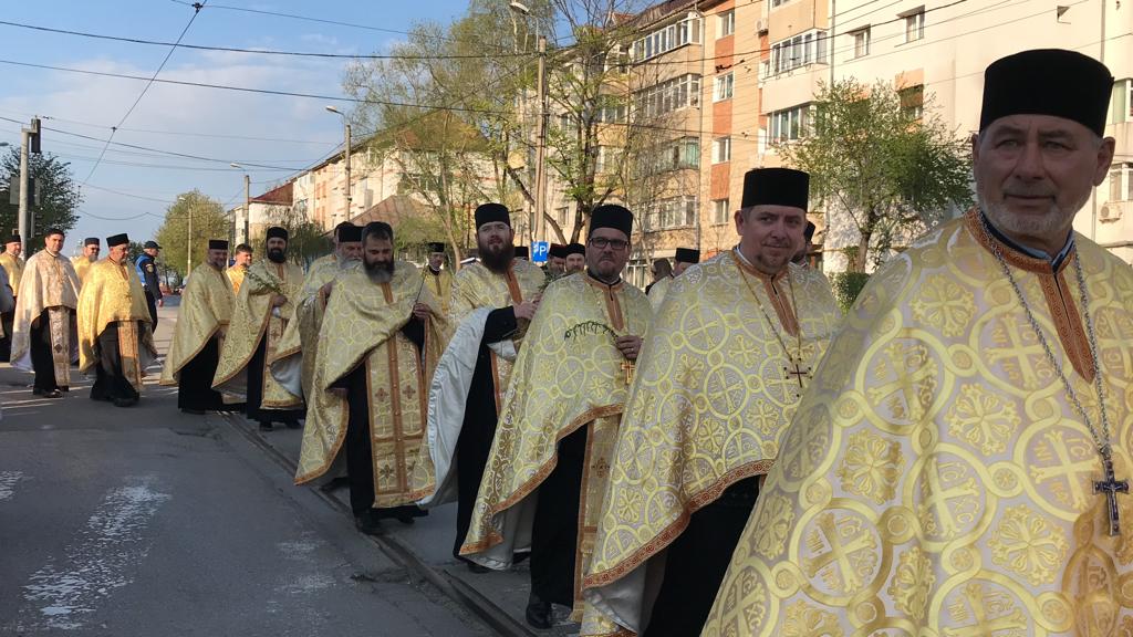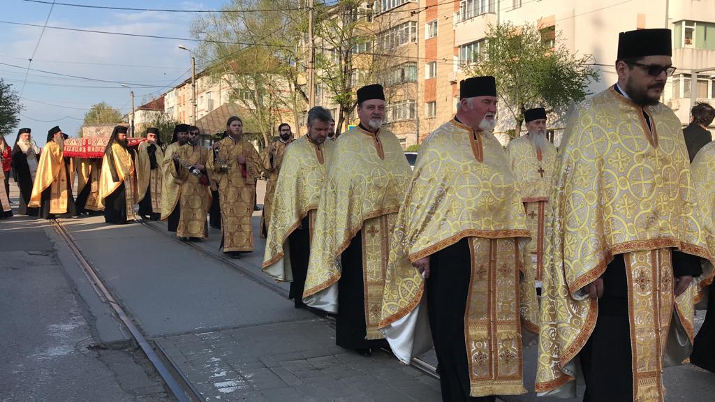 Preoții și credincioșii au pornit în pelerinaj de la Biserica Sfântul Gheorghe și au mers pe traseul – Direcția Drumuri Județene – Strada Ion Pillat – Calea Națională – Strada 1 Decembrie – Biserica Uspenia – Centrul Vechi – Strada Poștei – Biserica Sfântul Gheorghe.