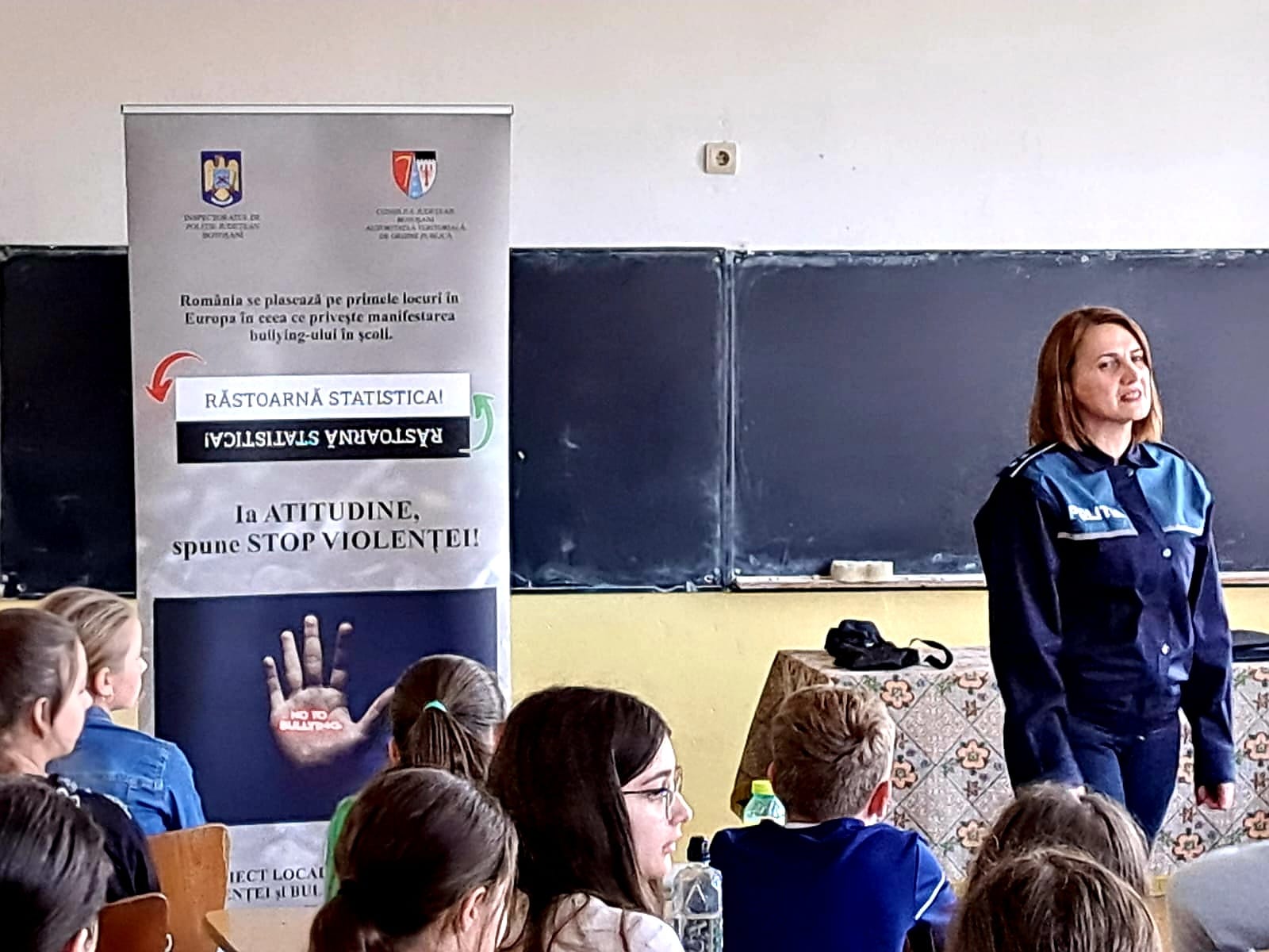 Polițiștii Biroului Siguranța Școlară continuă activitățile preventiv-educative în unitățile de învățământ din județ. Prevenirea bullying-ului, cyberbullying-ului și a oricărei forme de violență în mediul școlar continuă să rămână prioritară, transmite printr-un comunicat Inspectoratul de Poliție Județean.