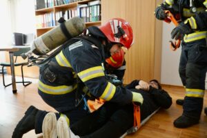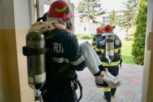 Pentru ca exercițiul să fie cât mai aproape de realitate, a fost simulată și salvarea a două persoane dintr-o sală de clasă.