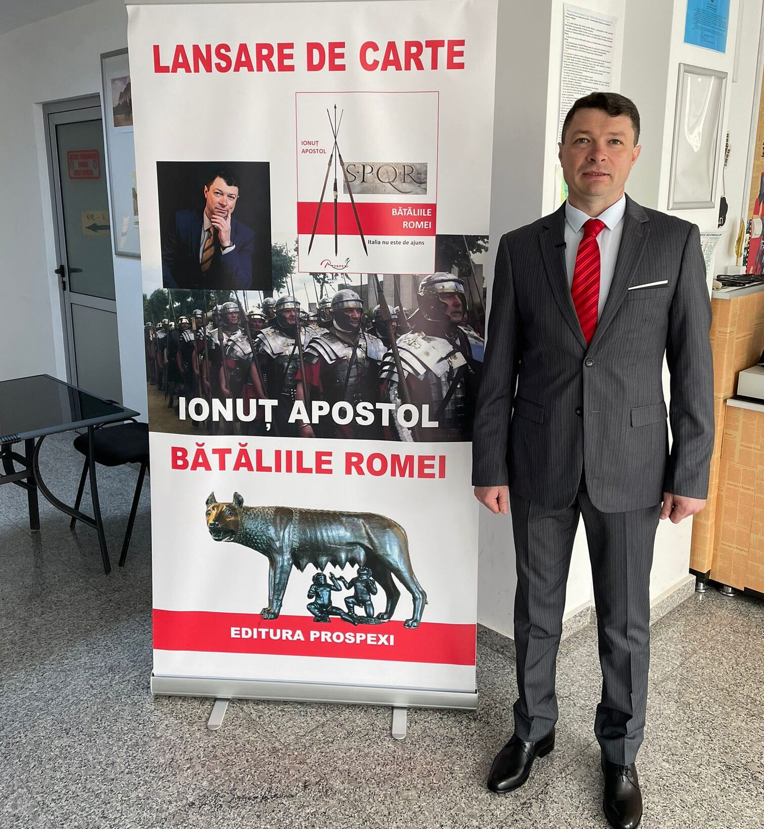 Un polițist rutier botoșănean a lansat, joi, 26 aprilie 2023, o carte. Este vorba de agentul șef principal de poliție Ionuț Apostol, din cadrul Poliției Municipiului Dorohoi-Biroul Rutier, care a lansat cartea intitulată ”Bătăliile Romei-Italia nu este de ajuns”.