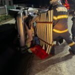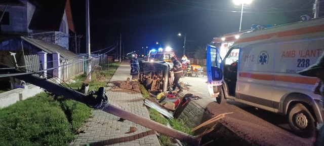 Când au ajuns pompierii, utoturismul se afla răsturnat pe cupolă, 2 victime erau inconștiente și încarcerate, iar cea de-a treia victima era conștientă, în stare de șoc, cu diverse fracturi, fiind preluată de către un echipaj medical SAJ.