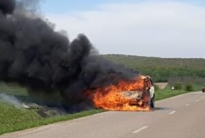 Un microbuz a luat foc, miercuri după-amiază, pe DJ 291 D, la ieșirea din localitatea Suharău spre Oroftiana. Conducătorul auto a simțit miros de fum, a oprit autovehiculul să vadă ce se întâmplă, iar în acel moment, au ieșit flăcari de la compartimentul motor. În scurt timp, incendiul s-a extins la întreaga autoutilitară.