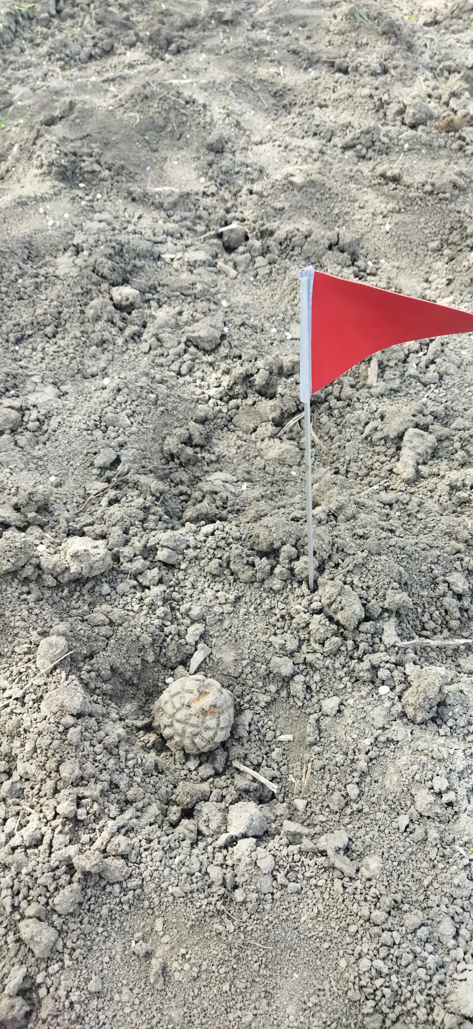 Tot miercuri, un localnic din Sapoveni a găsit un proiectil în timp ce lucra la câmp.
