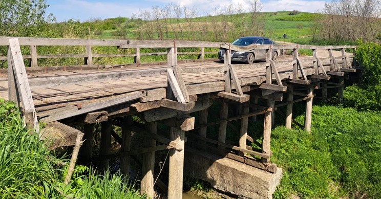 În satul Mateieni, comuna Dimăcheni, din județul Botoșani, în orice moment se poate produce o tragedie rutieră. Zilnic, zeci de autoturisme, dar și două microbuze școlare pline cu elevi trec peste un pod rutier care stă să se prăbușească, scrie Adevarul.