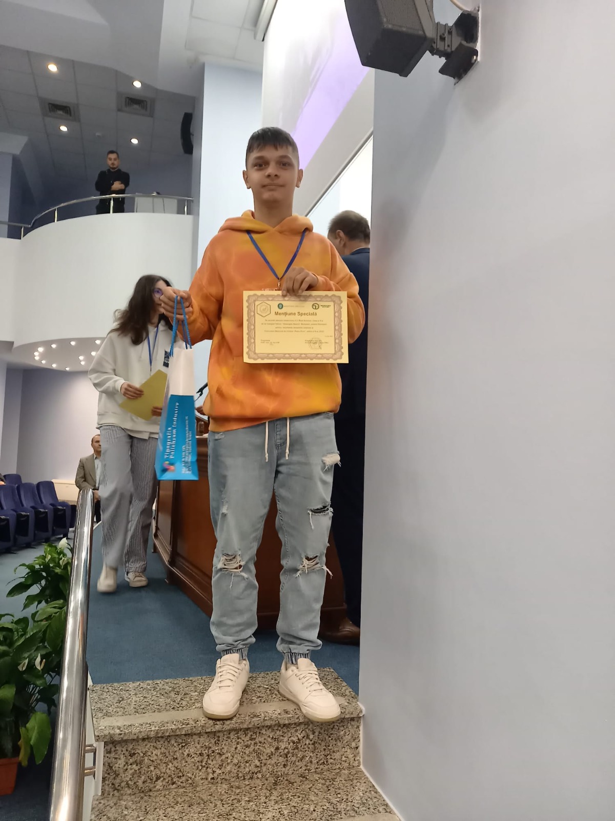 Au obținut rezultat foarte bune, respectic mențiune ME - eleva Cronț C.C. Evelina-Mihaela, de la  Liceul ”Dimitrie Cantemir” Darabani, profesor îndrumător - Chiriac Cristina, și mențiune Specială – elevul Ursăchianu C.I. Raul-Antonio, de la Colegiul Tehnic ”Gheorghe Asachi” Botoșani, profesor îndrumător - Vărvăruc Maria.