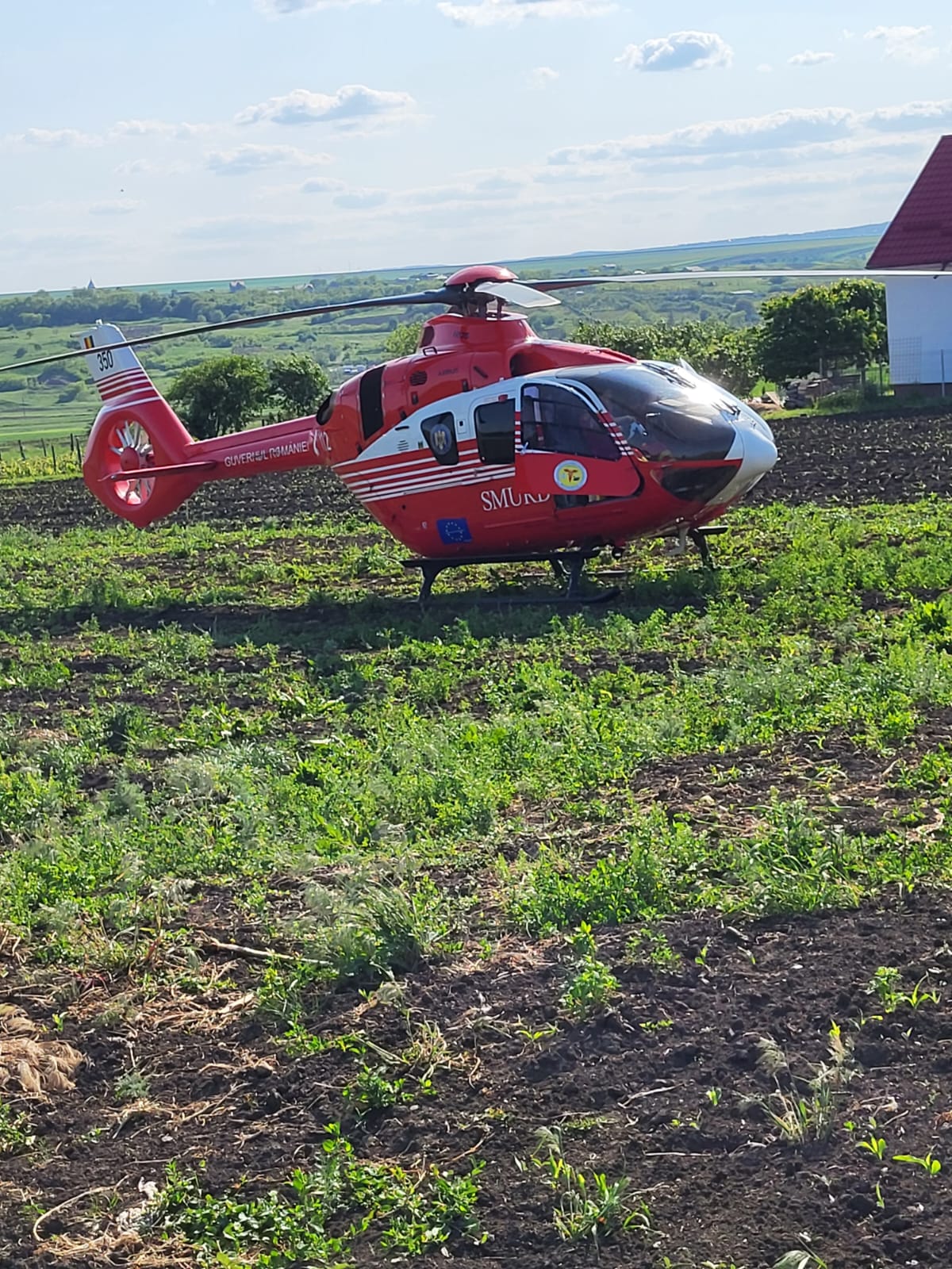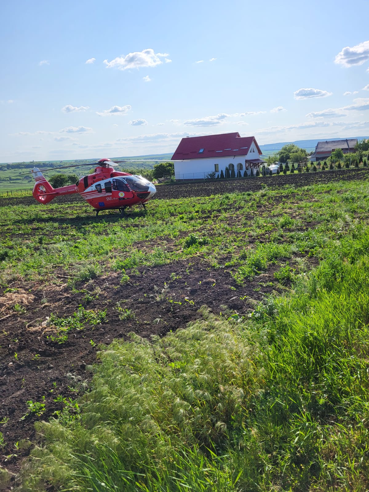 FOTO Elicopterul SMURD chemat pentru botoșăneanul rănit în acccidentul de la Prăjeni. Bărbatul este în stare gravă