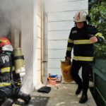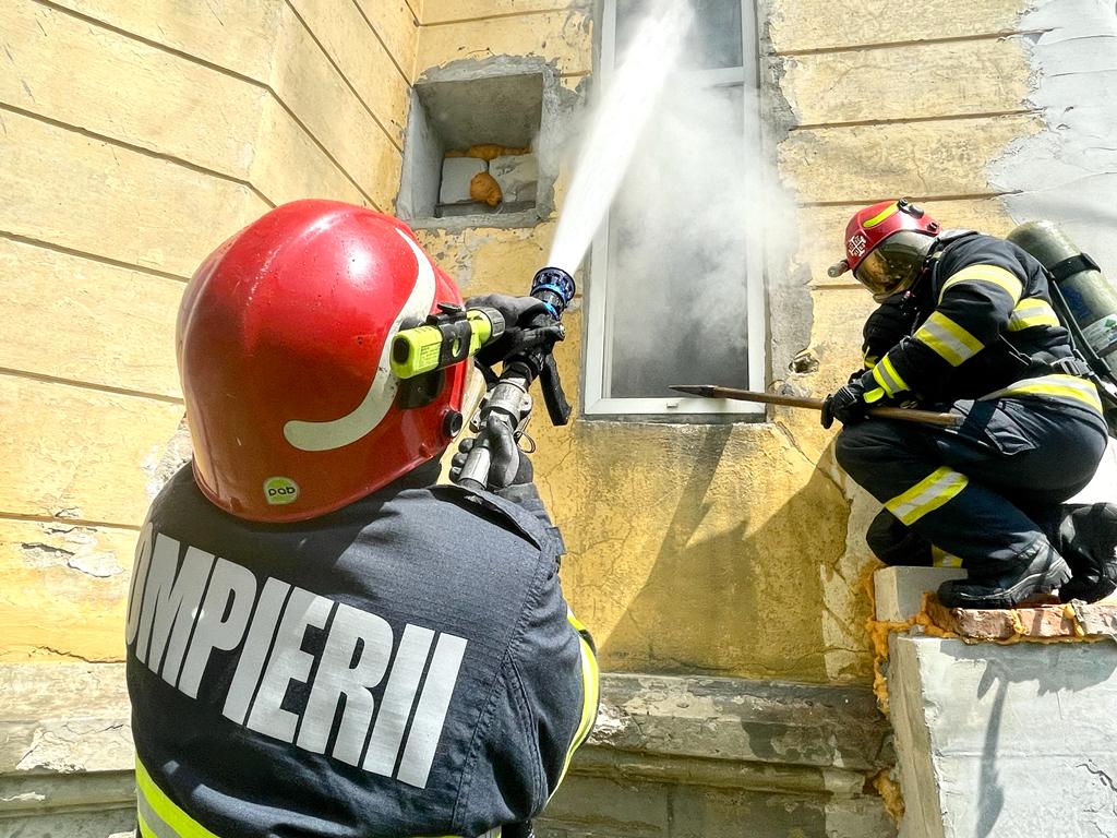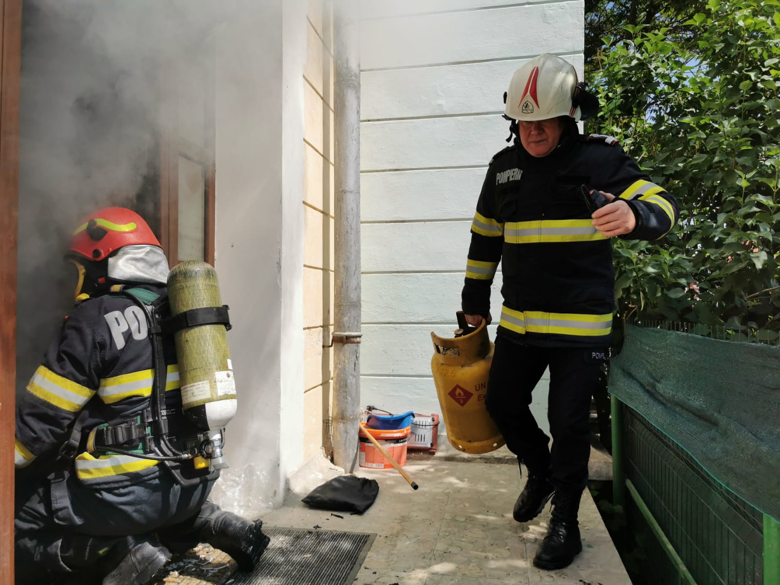Incendiul a fost stins în limitele găsite. Pompierii au eliminat riscul de explozie, din interior fiind scoasă o butelie.