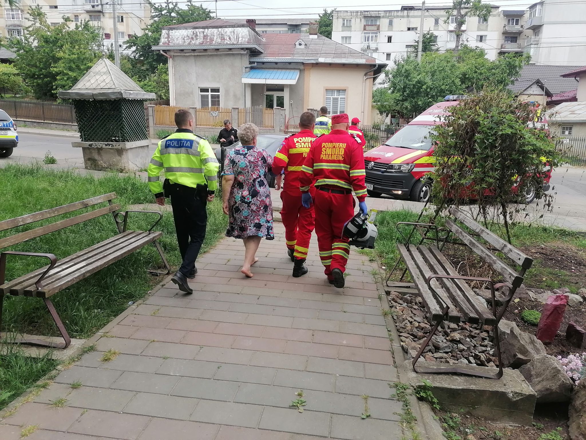 La fața locului a ajuns un echipaj SMURD, dar femeia a refuzat să meargă la spital, astfel că în ajutor a venit un echipaj de la Poliția Municipiului Dorohoi.