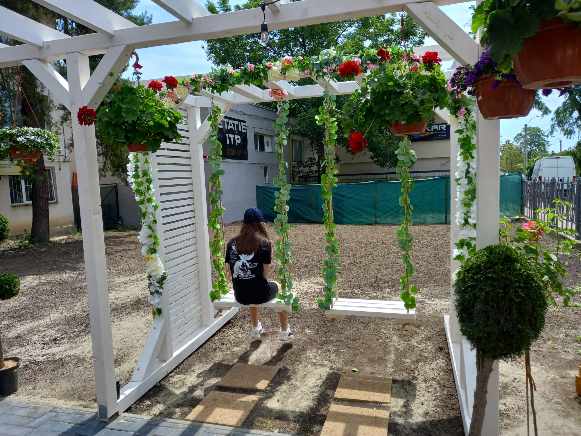Alexandru are o firmă în construcții și s-a ocupat de tot ceea ce înseamnă realizarea micii grădinițe cu flori. Locul a fost amenajat de el, dar fiecare colțișor scoate în evidență personalitatea remarcabilă a soției sale, Alexandra. Practic, totul a fost creat cu multă pasiune și dragoste de frumos.