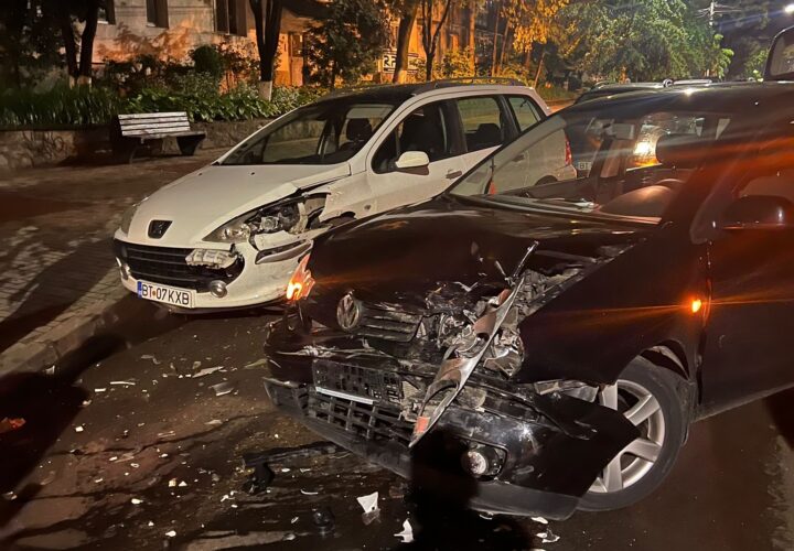 FOTO Accident pe Bulevardul Mihai Eminescu din Botoșani. Un tânăr a intrat cu viteză într-o mașină parcată