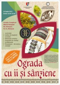 Sâmbătă, 24 iunie 2023, de Ziua Universală a Iei, Centrul Judeţean pentru Conservarea şi Promovarea Culturii Tradiţionale Botoşani, instituție publică de cultură, aflată în subordinea Consiliului Județean Botoșani, organizează activitatea „Ograda cu ii și sânziene”, care se va desfășura la Complexul Muzeal Botoșani, str. Doboșari, Nr. 61.