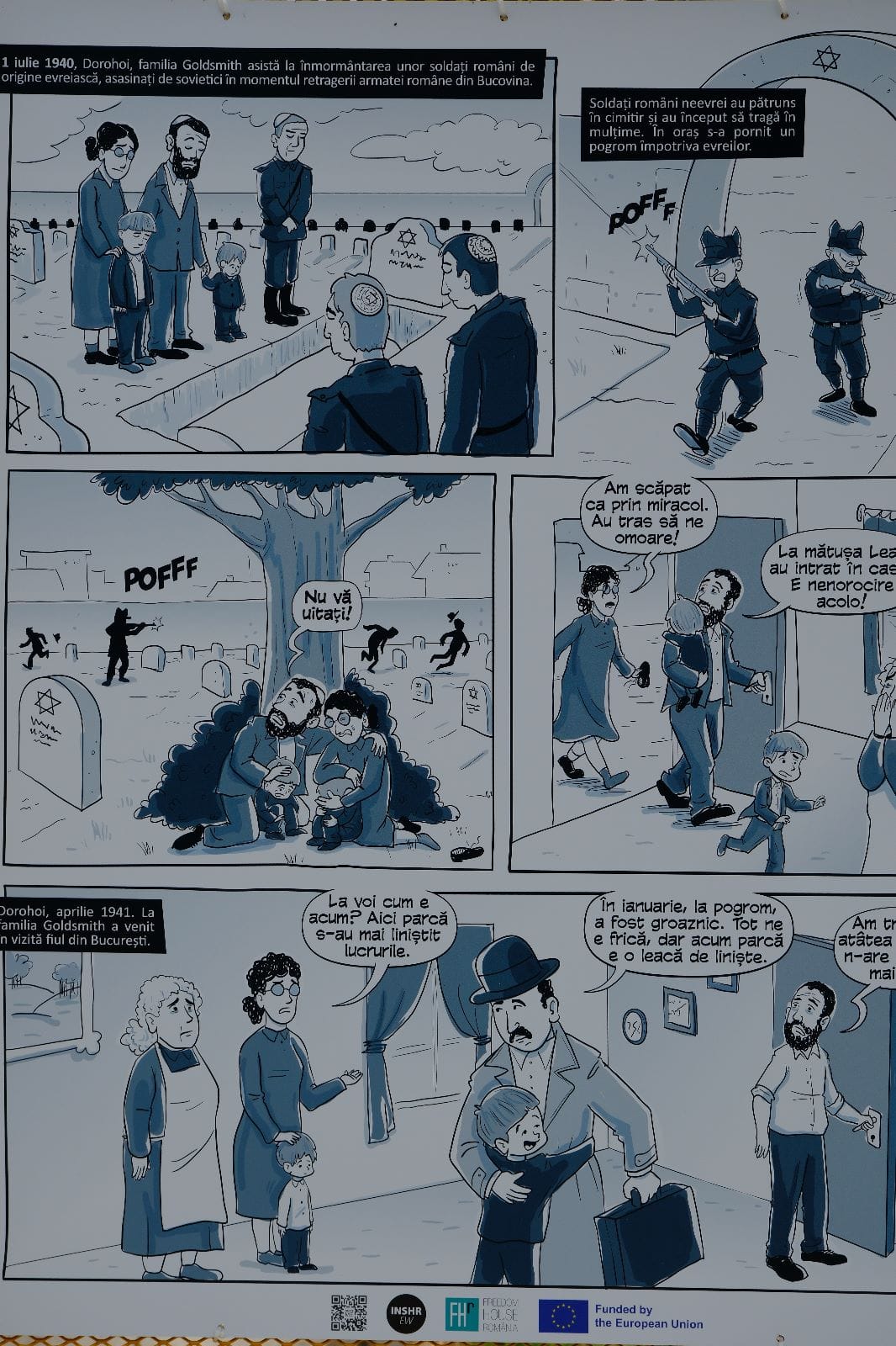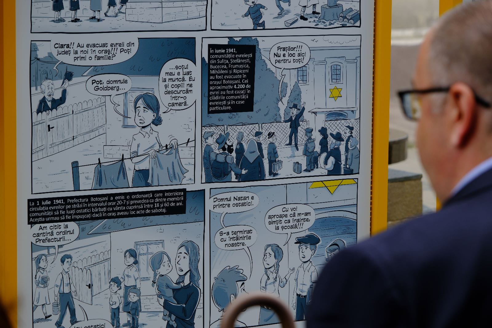 Conținutul expoziției de bandă desenată din Botoșani este dezvoltat de Institutul ,,Elie Wiesel" în colaborare cu elevi și cadre didactice de la Colegiul Național ,,Mihai Eminescu".