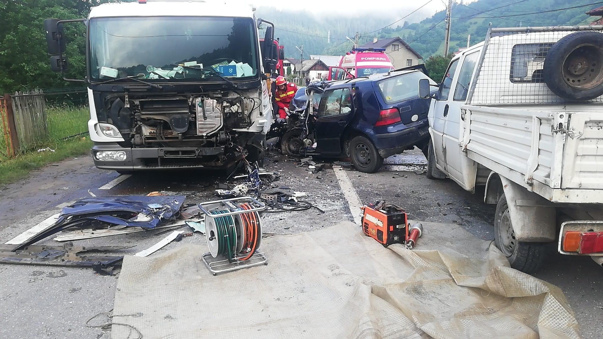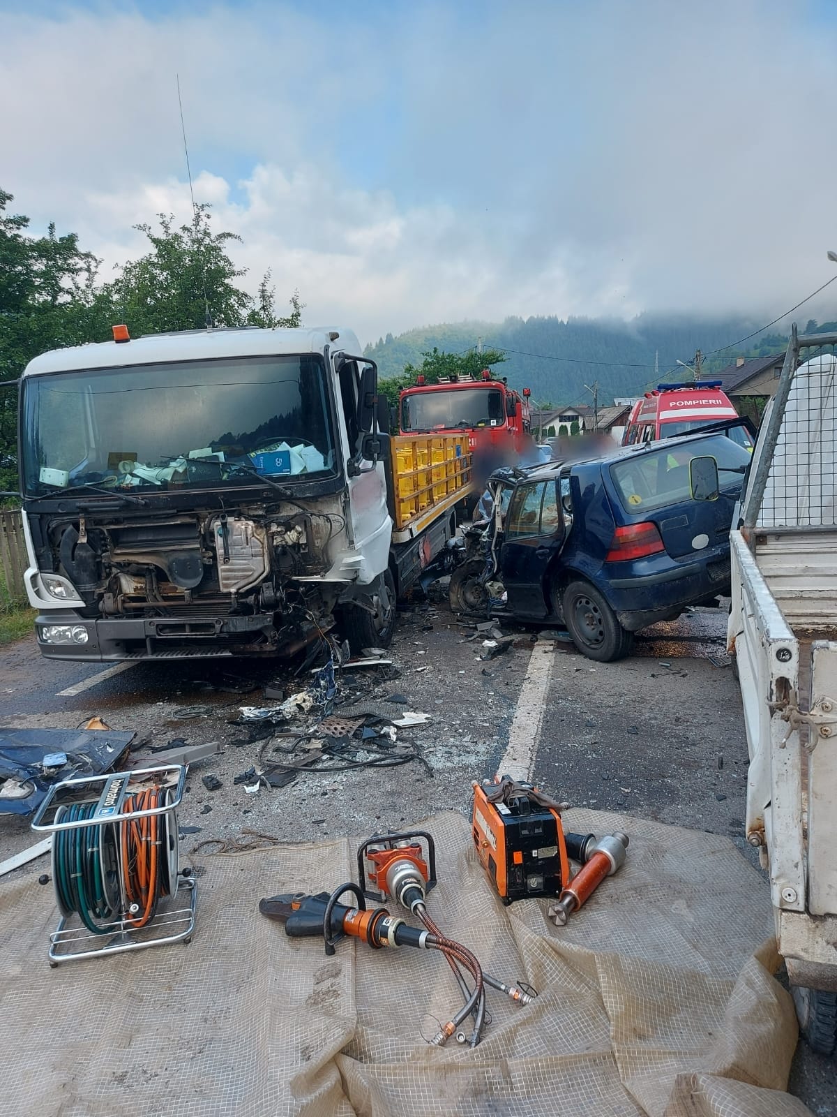 Pompierii militari au asigurat masurile de siguranta specifice in cazul producerii accidentelor rutiere - au balizat zona, au deconectat bornele de la bateriile de acumulatori si au verificat scurgerile de carburanti si lubrifianti.