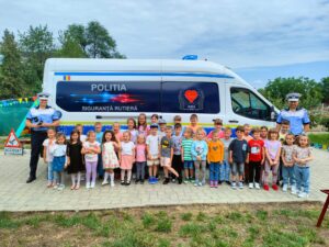 Polițiștii din cadrul Poliției Municipiului Dorohoi- Biroul Rutier i-au vizitat, pe 19 iunie, pe copiii prezenți în grădinița cu program prelungit „Albă ca Zăpadă”, din municipiul Dorohoi.