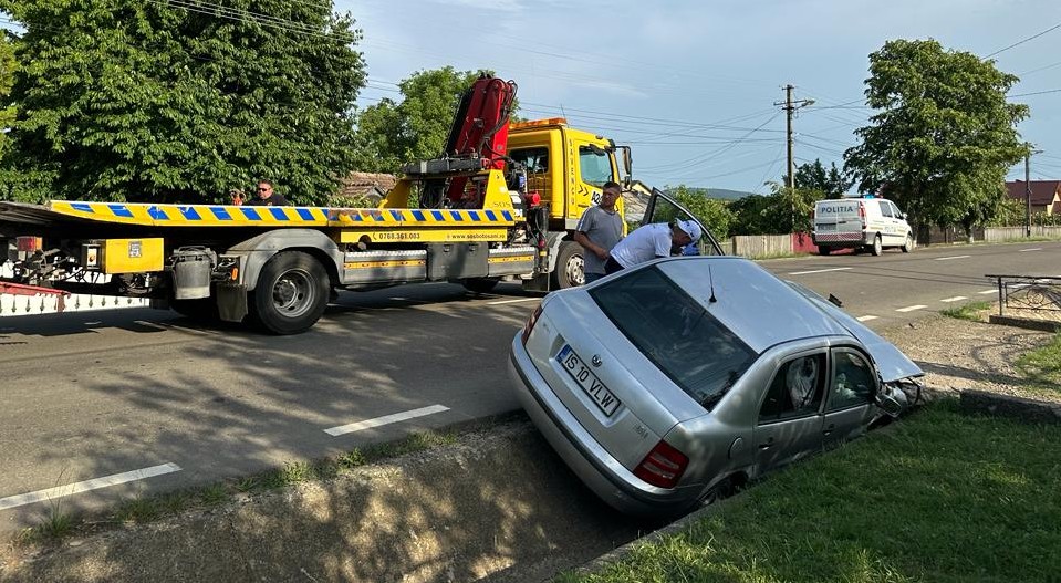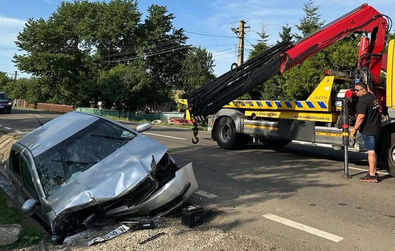 Un accident rutier a avut loc, sâmbătă după-amiază, într-o localitate din județul Botoșani. Un șofer a ajuns cu mașina într-un cap de pod.