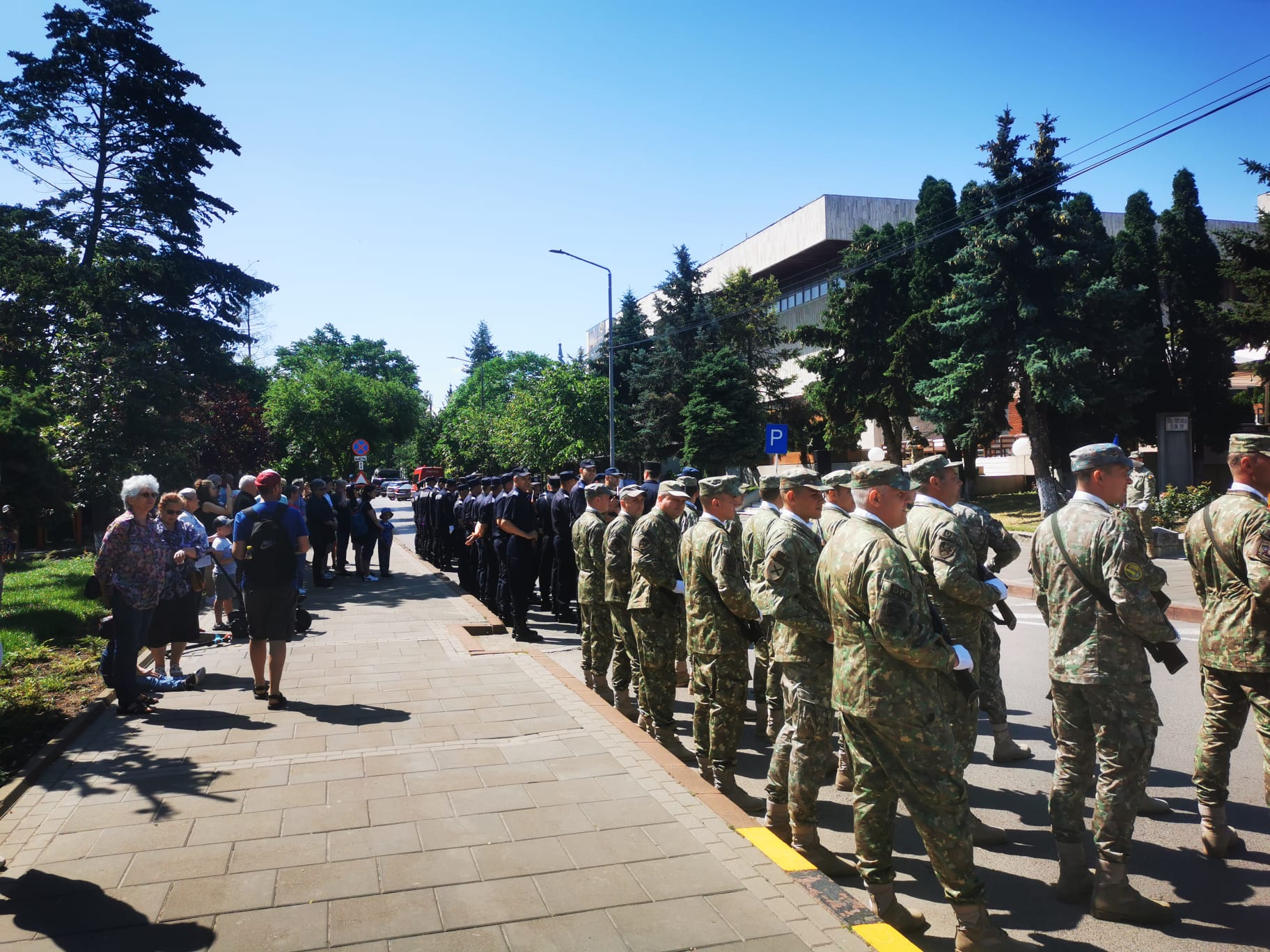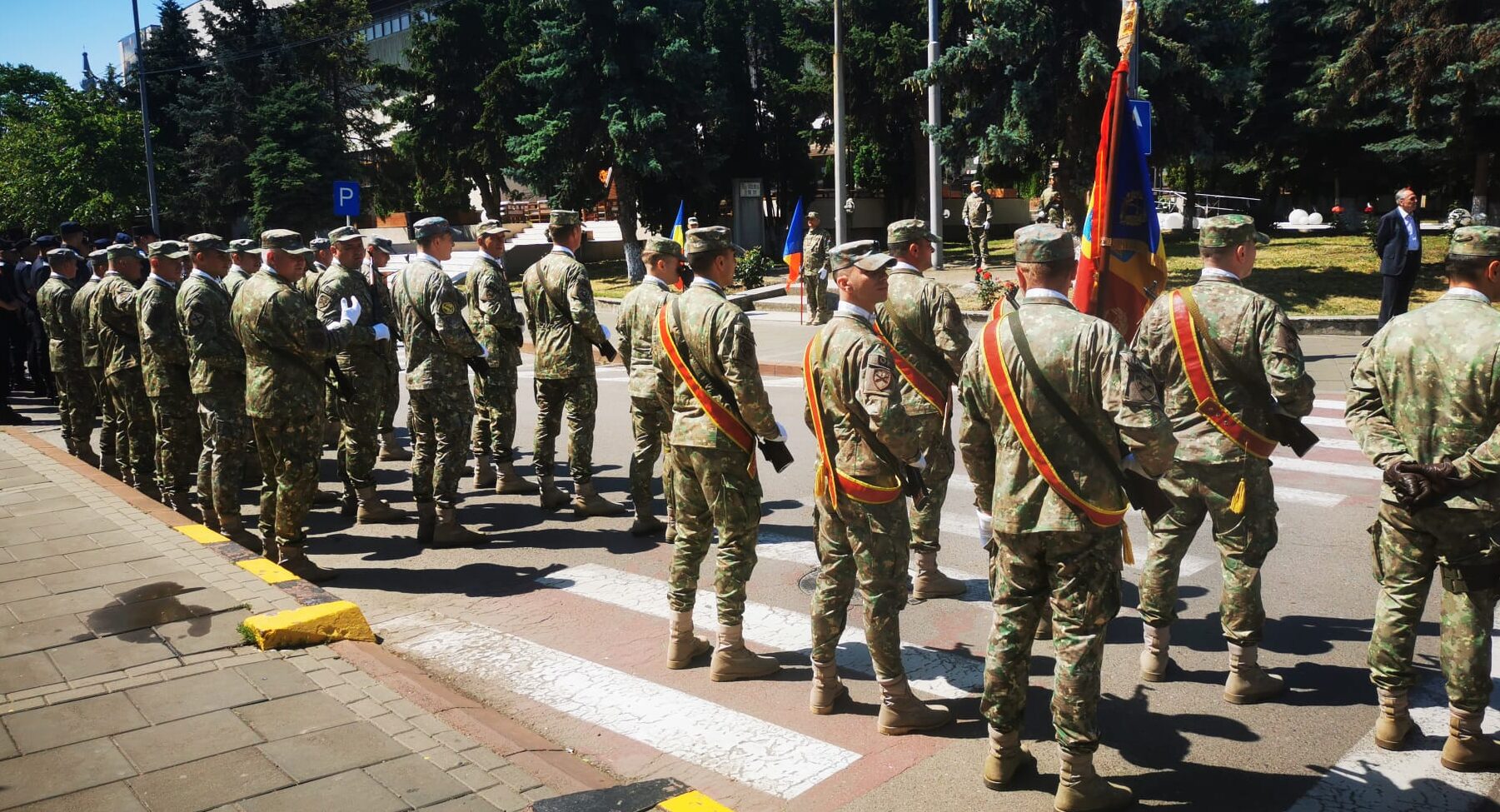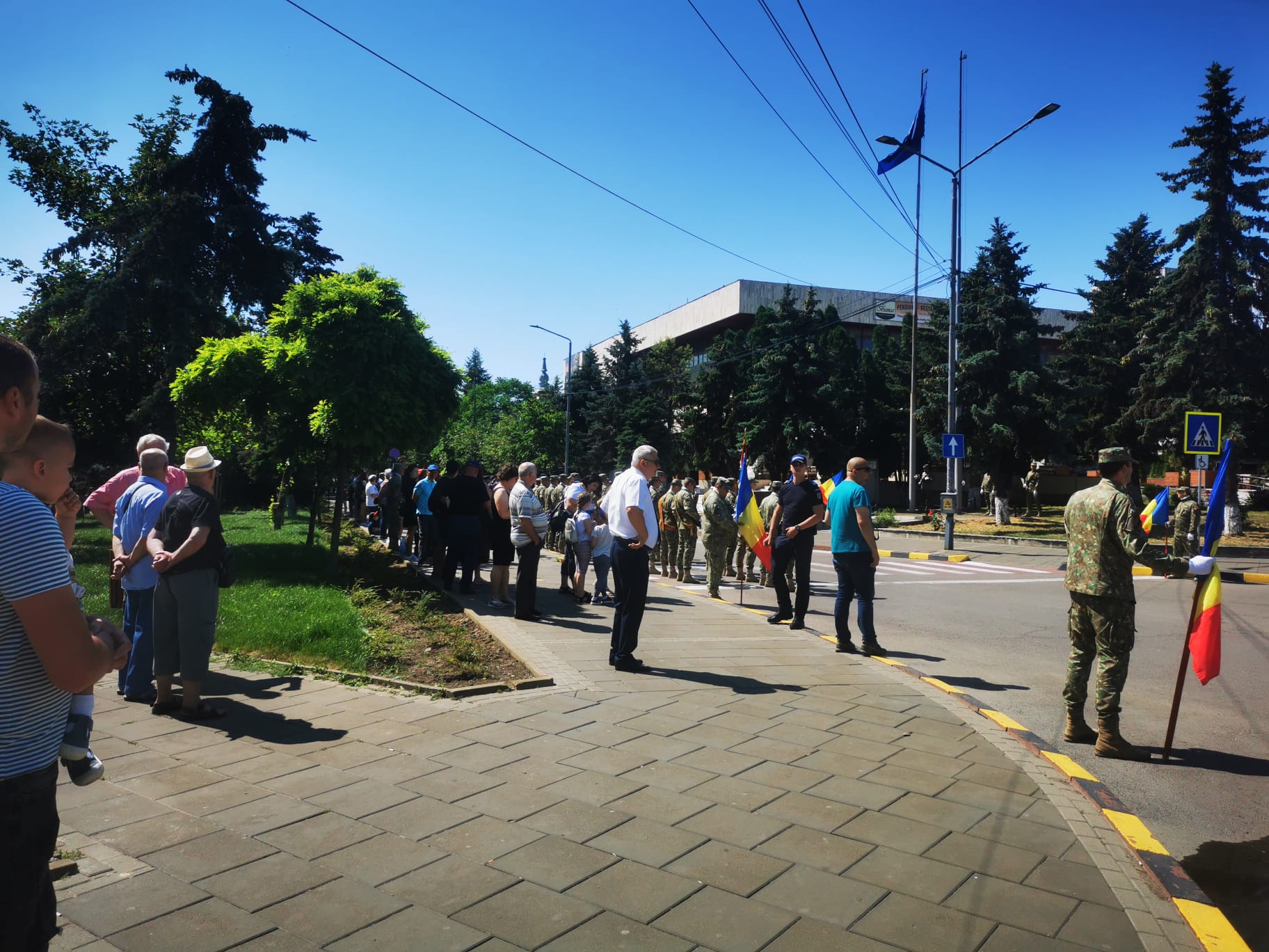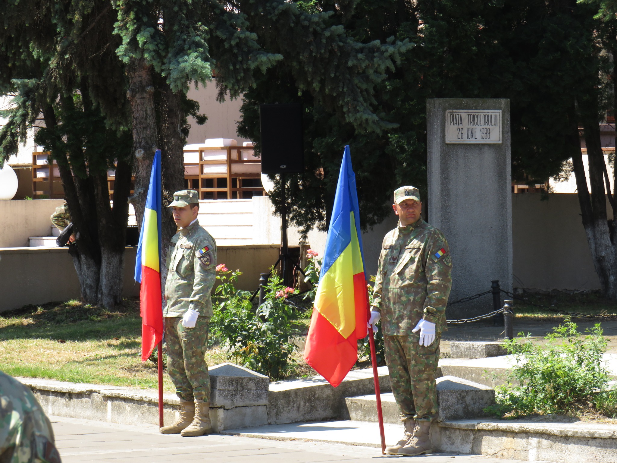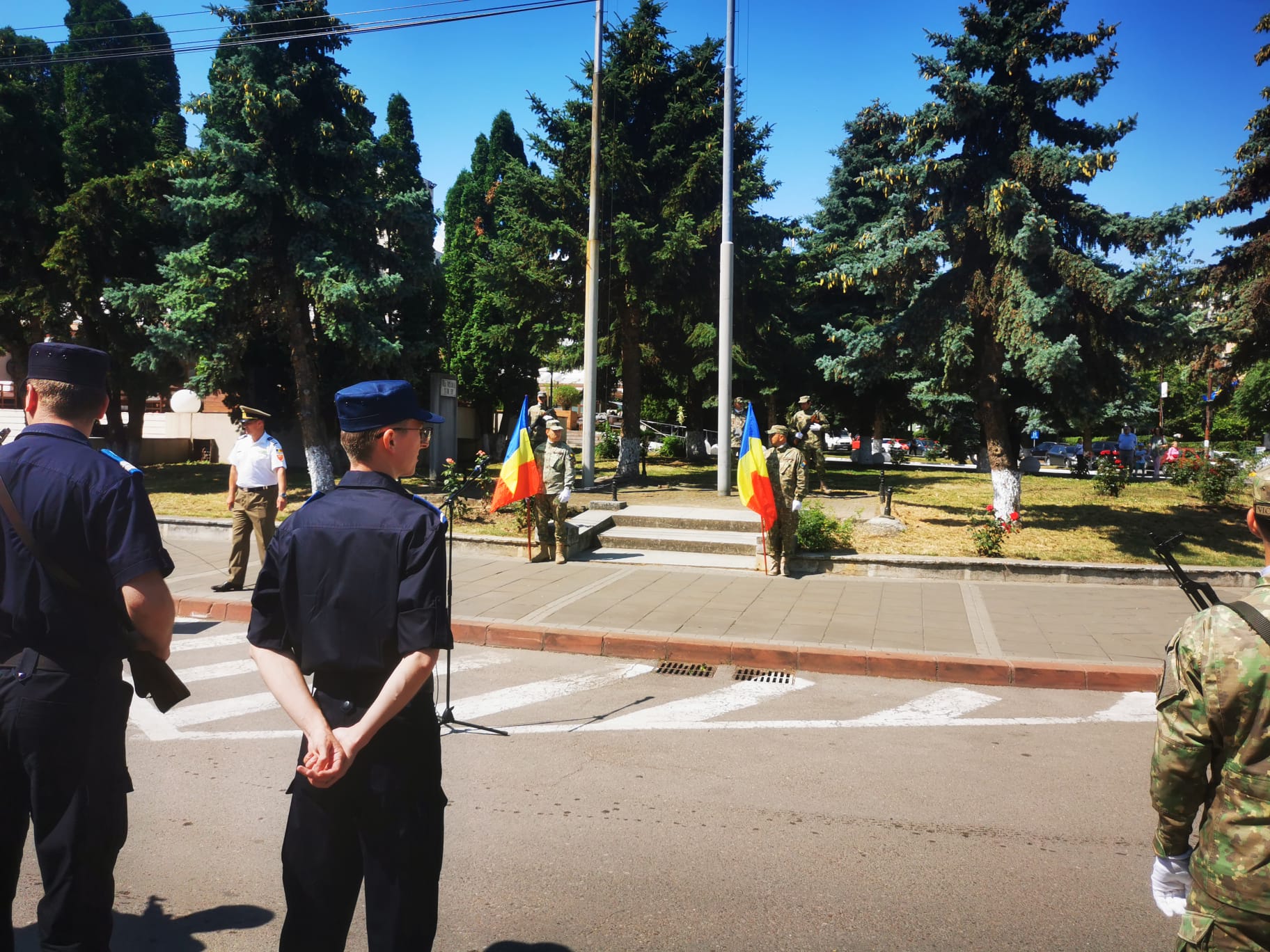 Manifestările au debutat cu trecerea în revistă a detașamentului de onoare, după care a fost intonat Imnul Național al României. Șase militari au adus drapelul la catargul de arborare. În cadrul acestui moment solemn, preotul Garnizoanei a oficiat un serviciu religios.