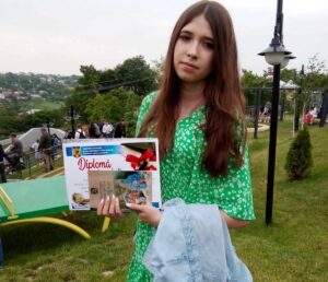 „A fost un an puțin mai dificil, dar pe cât de dificil pe atât a fost și de plăcut. Mi-am sacrificat sâmbetele pentru a participa la centrele de excelență de la română, matematică și engleză.L e mulțumesc atât doamnei profesoare Mihaela Cardaș, cât și doamnei Apachiței Diana. A fost un an greu: am avut de învățat, m-am implicat și în activitățile de la școalp, care mi-au ocupat timp și în ciuda grevei, clasa a VIII-a nu a fost un obstacol greu de trecut”, spune adolescenta.