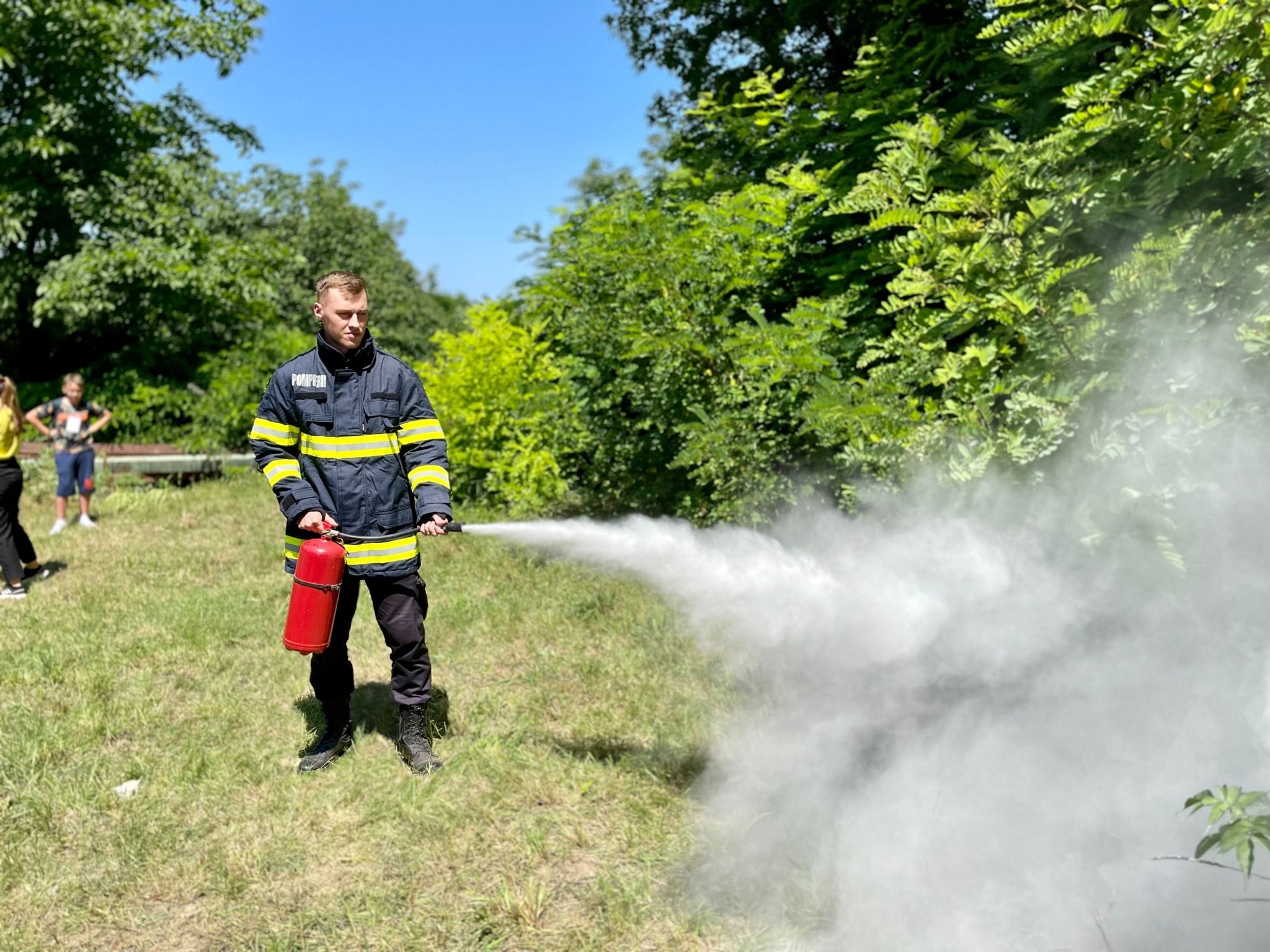 Copiii au aflat și în ce situații pompierii intervin cu autospecialele de stingere cu apă și spumă și descarcerare, cum se folosește fiecare accesoriu și au învățat și să utilizeze un stingător.