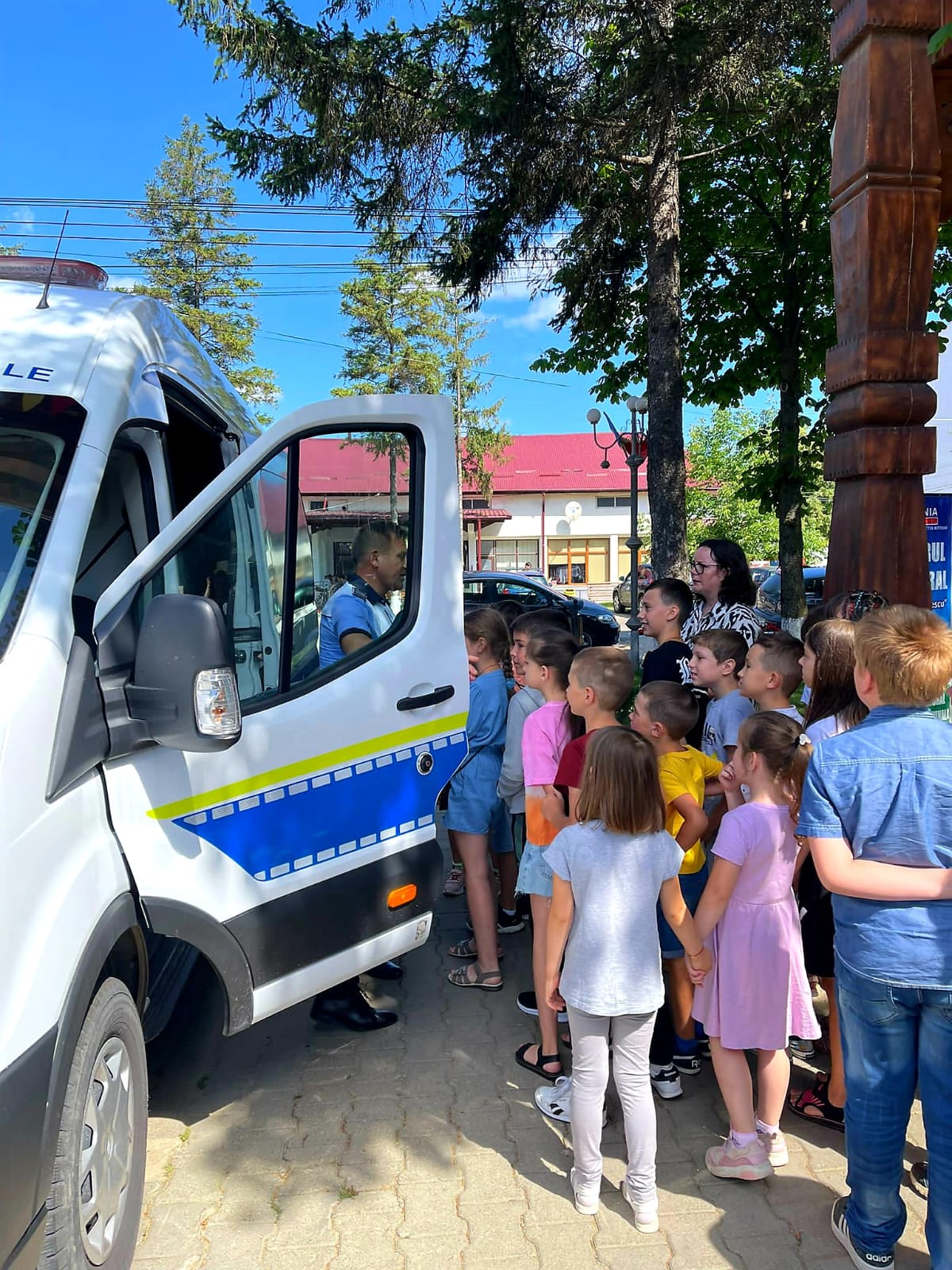 Copiii au avut acces în interiorul autolaboratorului de siguranta rutiera, simțindu-se pentru câteva clipe și ei mici polițiști. La sfârșitul activității, unul dintre polițiștii rutieri a avut parte de un gest emoționant, din partea unei fețite, care i-a dăruit un trandafir, în semn de mulțumire, pentru modul în care a prezentat activitatea.