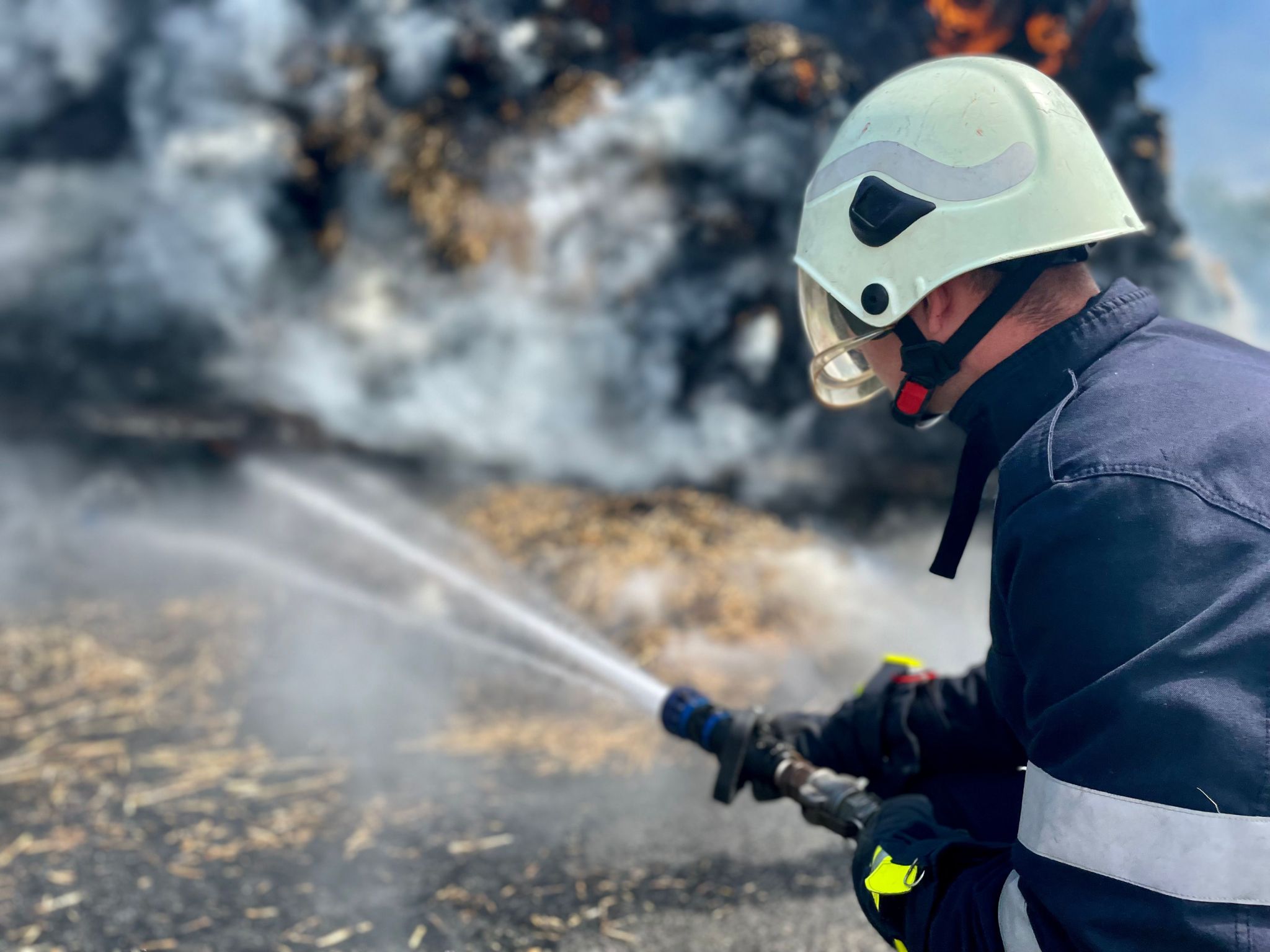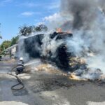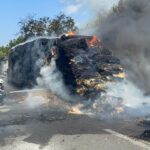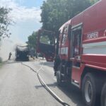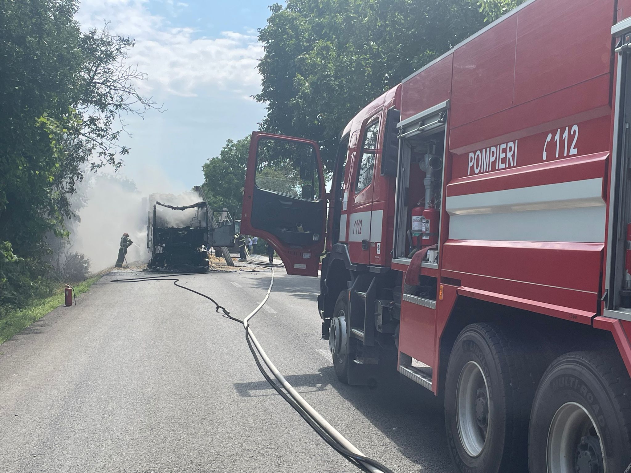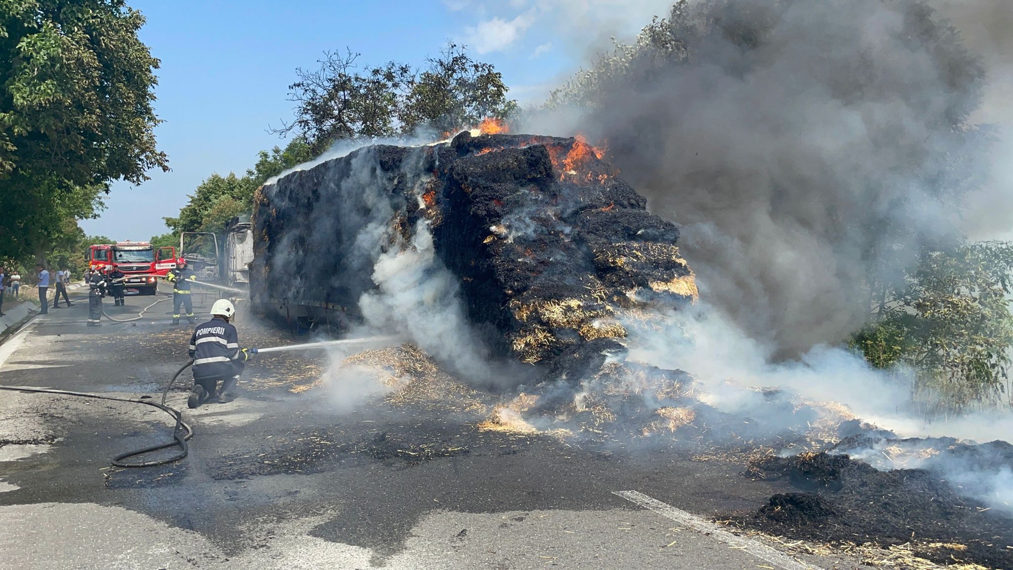Un camion a luat foc pe un drum din Botoșani. Pompierii botoșăneni au intervenit, miercuri, pentru a stinge un incendiu ce a cuprins un camion încărcat cu baloți de paie.