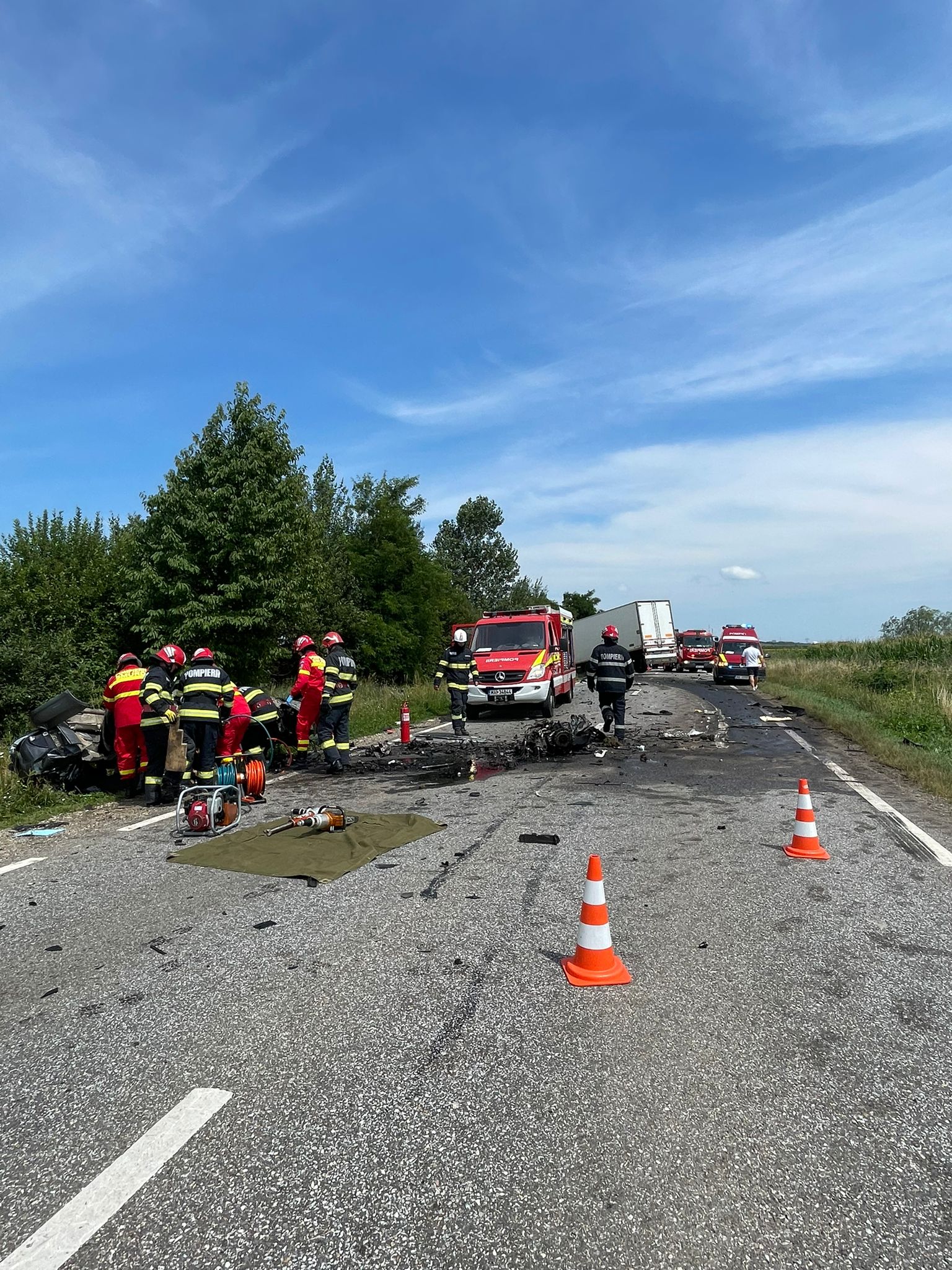 Șoferul autoturismului a fost extras dintre fiarele contorsionate. Din nefericire, acesta prezintă leziuni incompatibile cu viața. Conducatorul autotrenului, conștient și cooperant, a fost preluat e un echipaj SAJ și este transportat la spital.