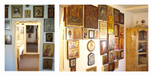 Aici sunt expuse peste 100 de icoane ortodoxe și catolice, unele valoroase prin vechime, altele prin ferecătura de aur sau argint. Camera adăpostește și alte obiecte de cult, de proveniență locală sau specifice culturilor orientale.