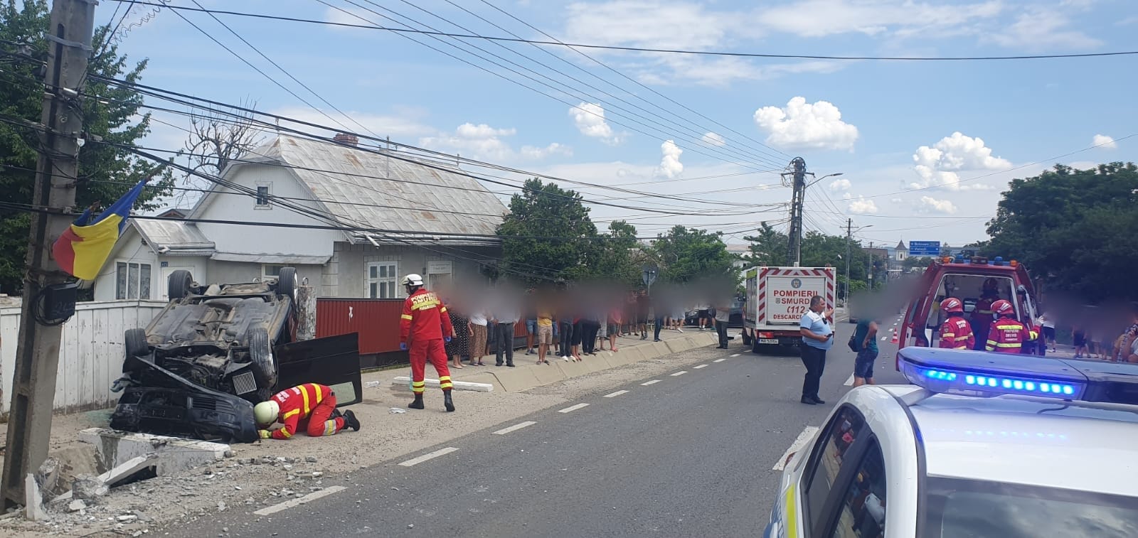 La fața locului au intervenit pompierii militari ai Detașamentului Suceava cu o autospecială pentru descarcerare și două ambulanțe SMURD (B2 și TIM). Polițiștii urmează să stabilească cum s-a produs accidentul.