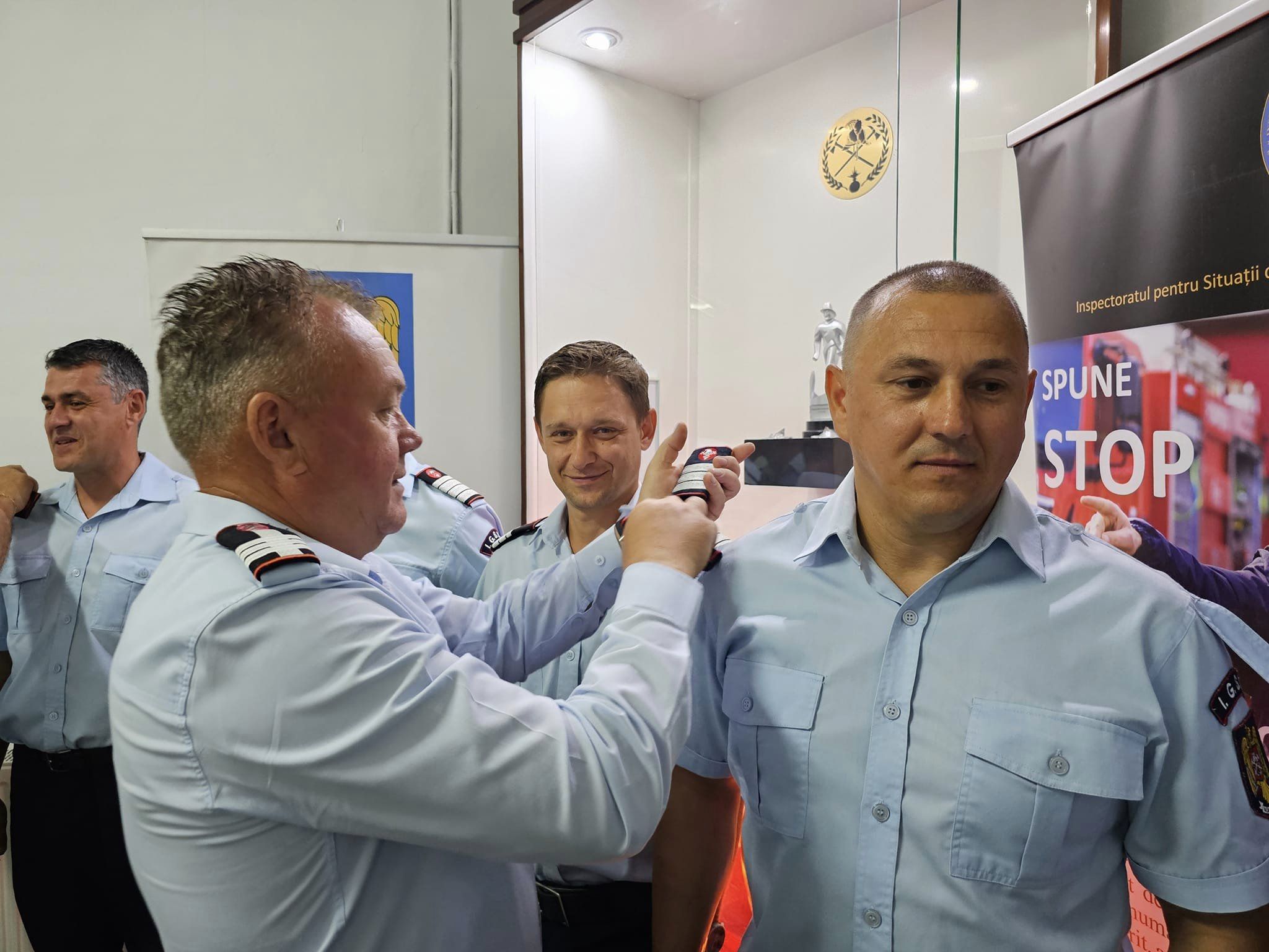 Doi ofițeri și 27 de subofițeri de la Inspectoratul pentru Situații de Urgență Botoșani au primit noi grade. Ofițerii și subofițerii care au fost avansați în grade sunt :