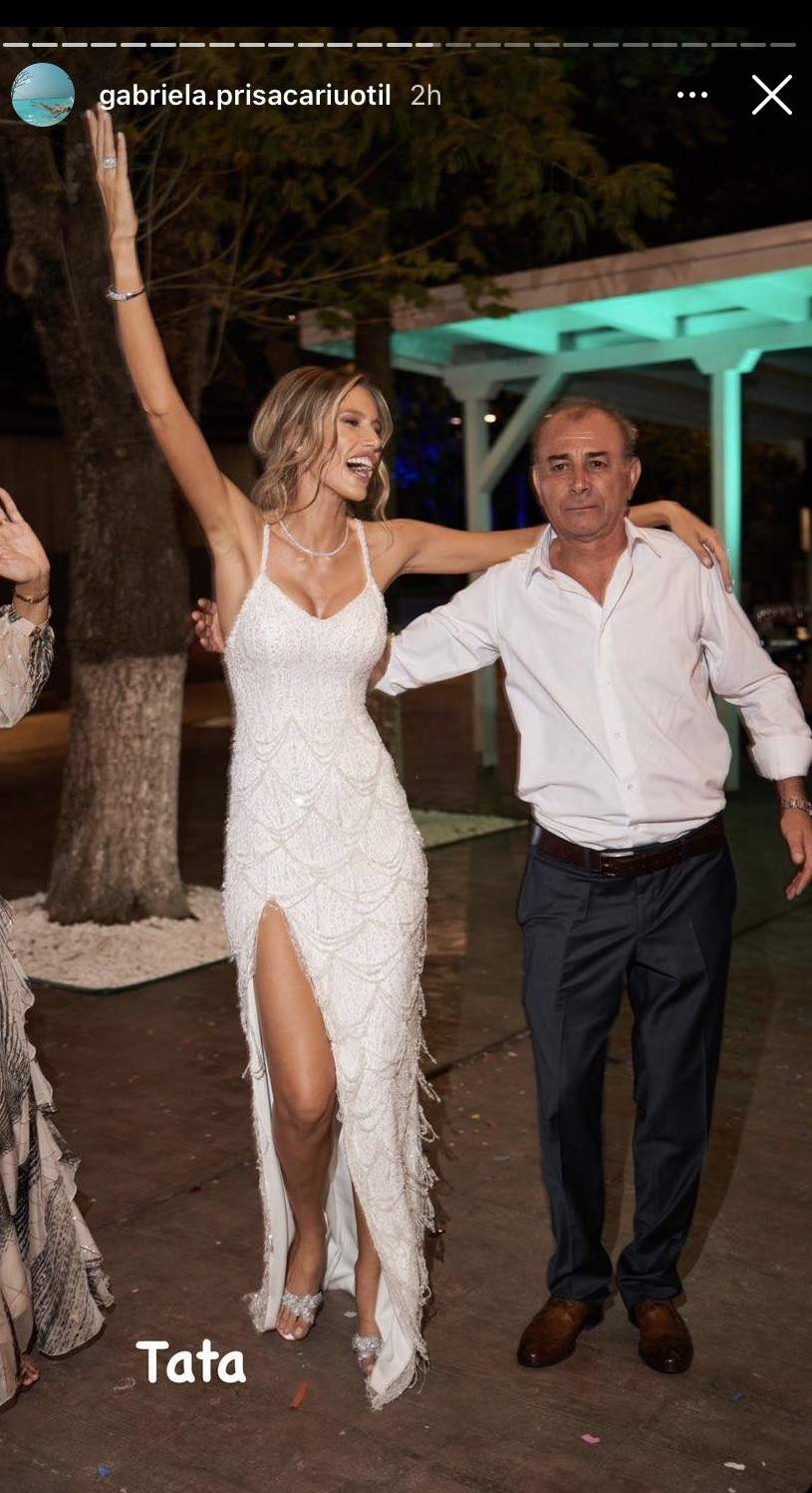În urmă cu câteva zile, Dani Oțil și botoșăneanca Gabriela Prisăcariu s-au căsătorit religios, ceremonie în timpul căreia s-a lăsat cu lacrimi de emoție. Mai apoi, cei doi, alături de familie și invitație, au petrecut până dimineață.Pe Instagram, soția lui Dani Oțil a postat mai multe imagini cu părinții săi din ziua nunții cu prezentatorul TV. Mama și tatăl ei s-au distrat pe cinste la petrecere, iar acest lucru se poate vedea cel mai bine din fotografiile distribuite de vedetă. Într-una din imagini, Gabriela Prisăcariu apare alături de tatăl său, iar părintele vedetei este emoționat în ziua în care fiica lui s-a căsătorit cu Dani Oțil, potrivit spynews.ro.