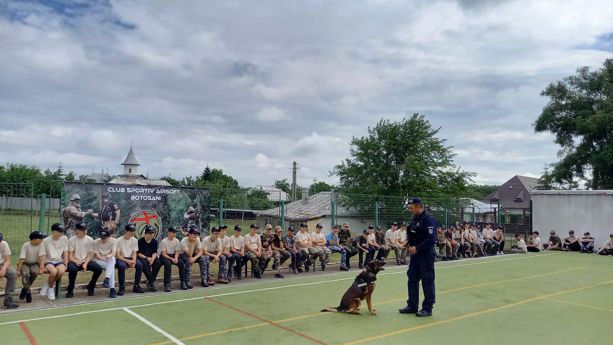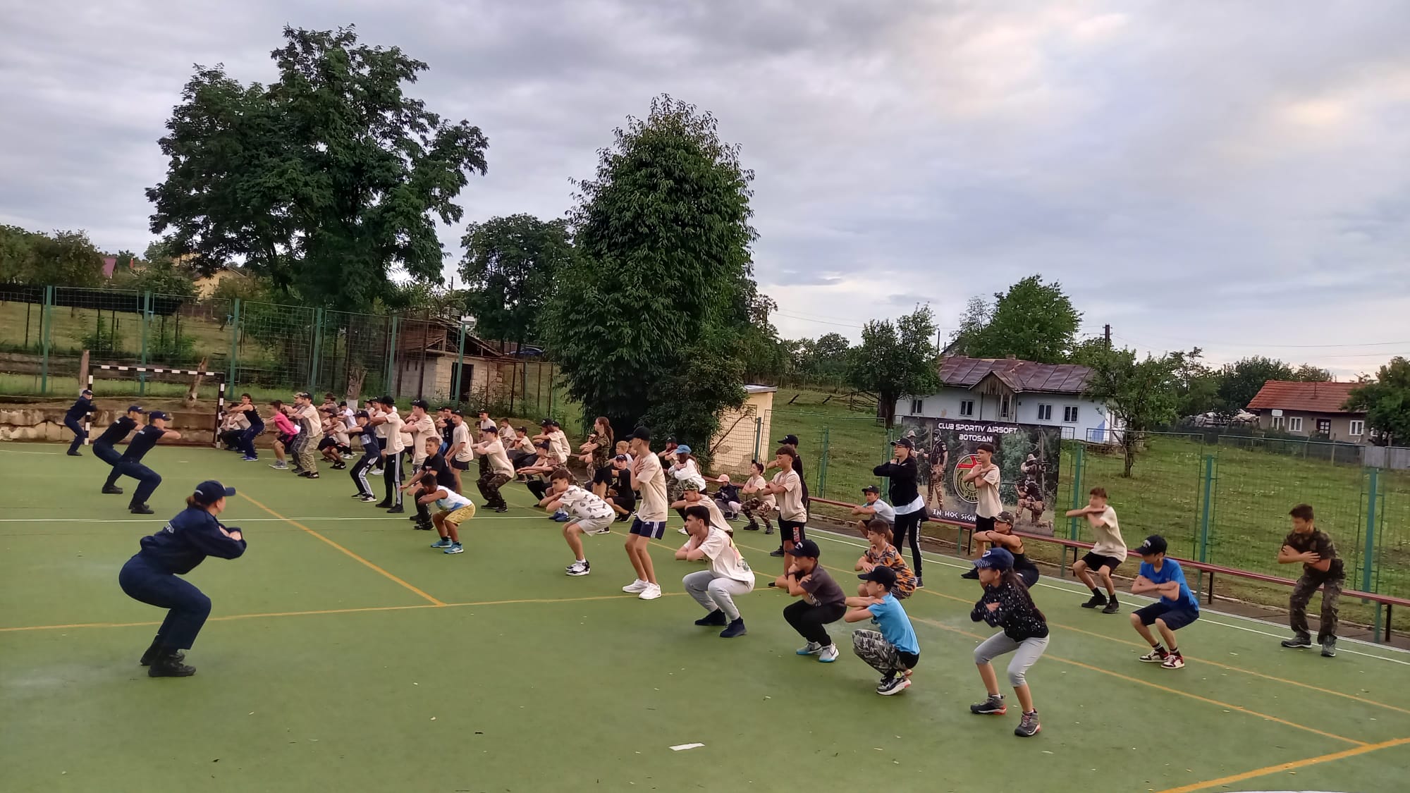 Copiii aflați în Tabăra Militară de Airsoft de la Agafton au început astăzi prima lor zi cu o inviorare condusă de elevii jandarmi aflați în practică la Inspectoratul de Jandarmi Județean Botoșani.