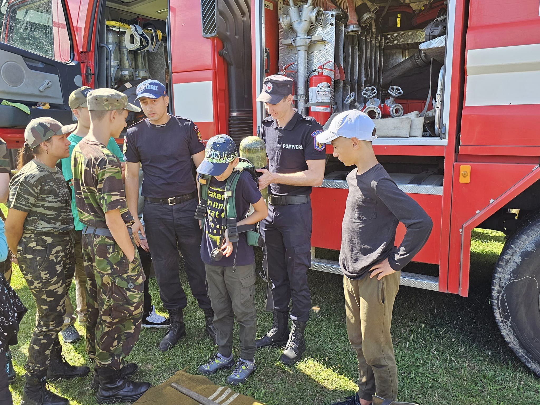 FOTO! Pompierii botoșăneni, activități cu copii din Tabăra Militară Airsoft Agafton