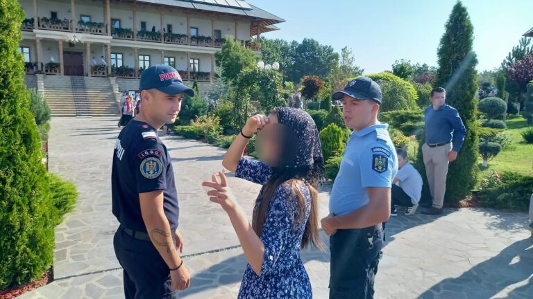 FOTO Panică la hramul mănăstirii Zosin. O copilă s-a rătăcit în mulțime și a cerut ajutorul jandarmilor