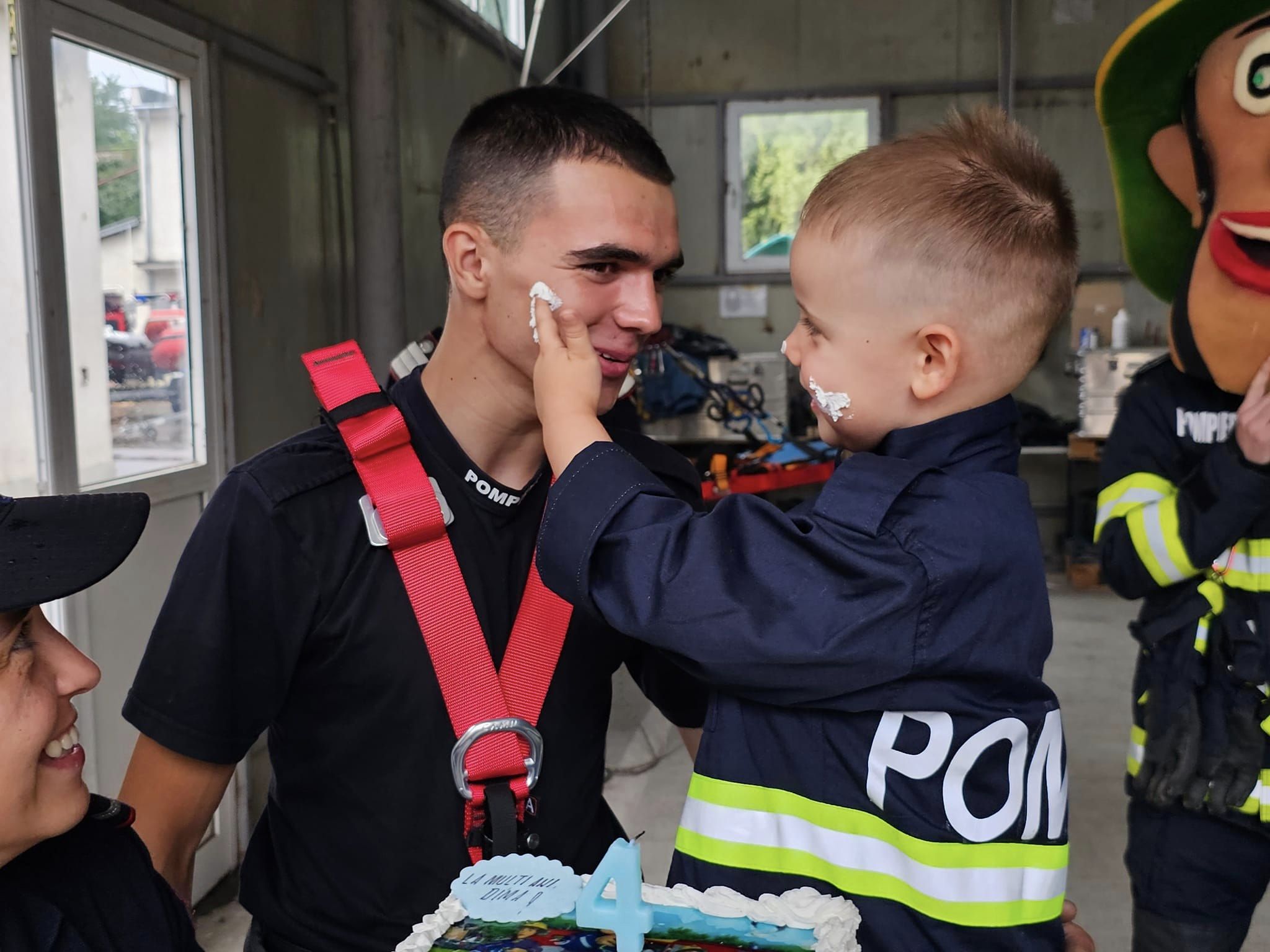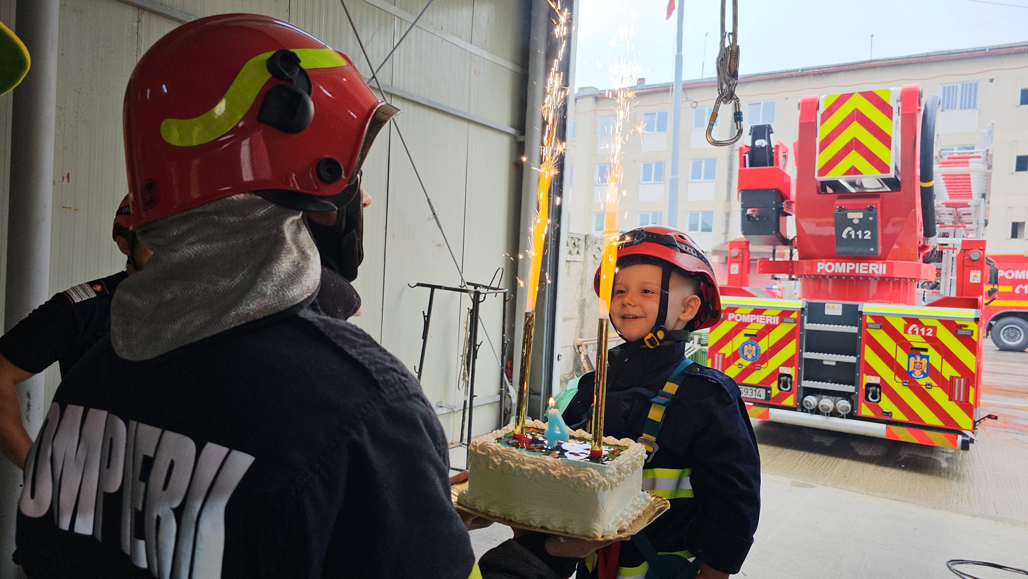 Inspectoratul Județean pentru Situații de Urgență Botoșani a aflat povestea lui. Pompierii i-au făcut o surpriză, miercuri, când a împlinit 4 ani. Complici le-au fost părinții băiețelului, alpiniștii și pompierii care nu erau în plecați în misiune. Copleșit de emoție și nerăbdător să urce în toate autospecialele de intervenție, ale căror denumire le știa pe de rost - așa a pășit Dima pe poarta subunității.