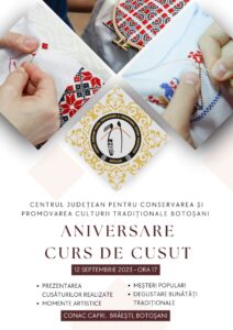Marți, 12 septembrie 2023, începând cu ora 17:00, la Conacul Capri din Brăești va avea loc un eveniment special, având în vedere că în luna septembrie 2023 se împlinește un an de când se organizează la Centrul Județean pentru Conservarea și Promovarea Culturii Tradiționale Botoșani, instituție publică de cultură aflată în subordinea Consiliului Județean Botoșani, cursul de cusut ii.