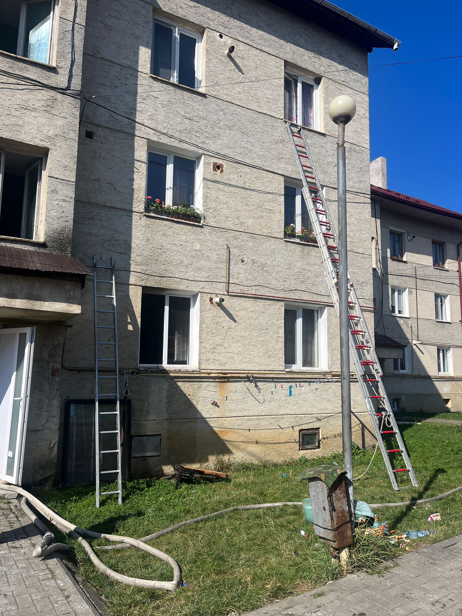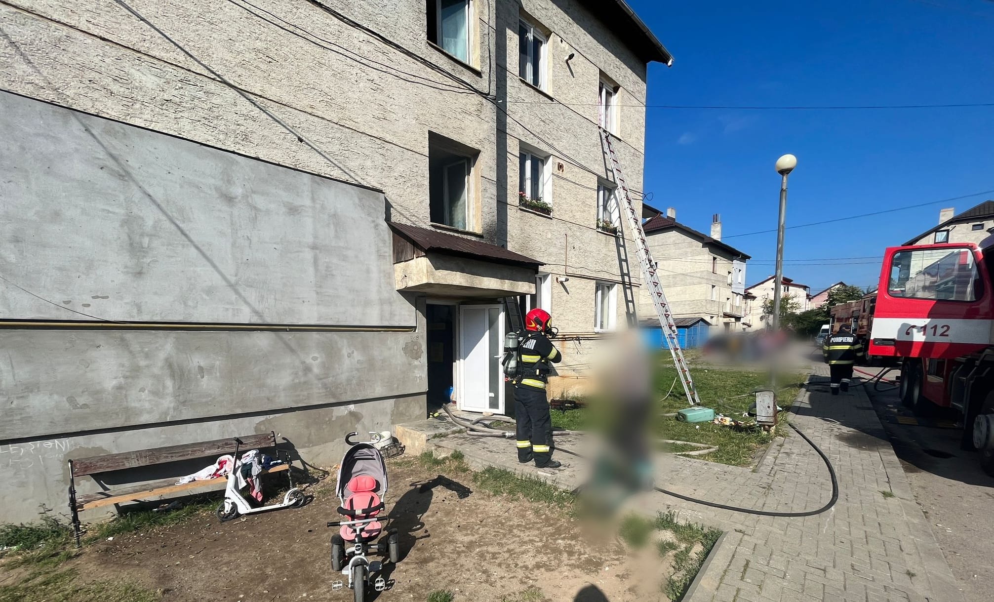 Panică într-un bloc de locuințe din orașul sucevean Gura Humorului! Un apartament a luat foc joi. Intervin pompierii militari, cu doua autospeciale de stingere cu apa si spuma si o ambulanta SMURD. Flacarile se manifesta intr-una dintre camerele apartamentului, cu degajari mari de fum.