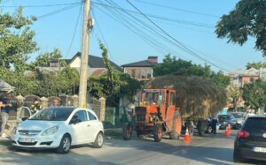În momentul respectiv, autoturismul în care se afla a fost lovit din spate de un tractor cu o remorcă încărcată cu fân.