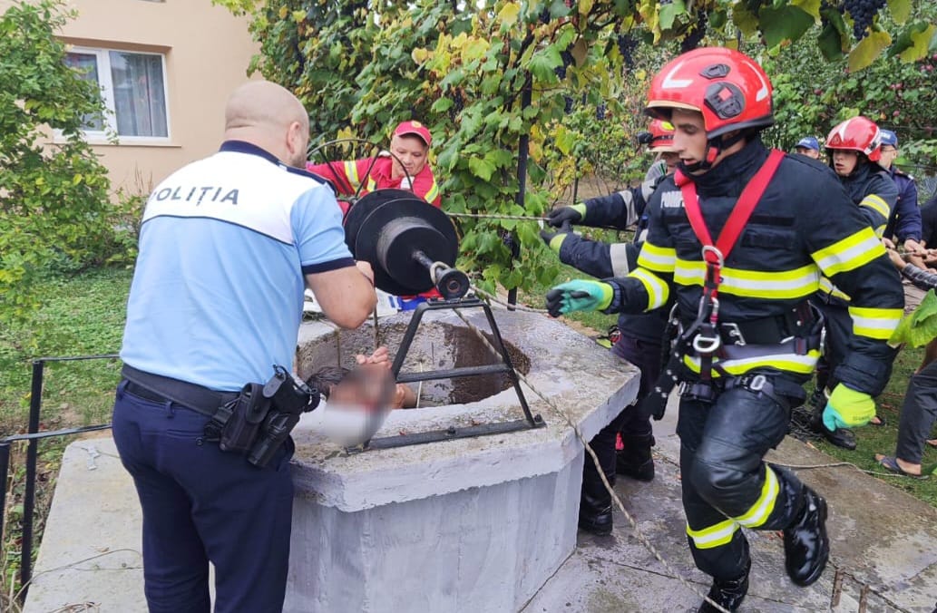 Echipajul de poliție direcționat la fața locului, în momentul în care a ajuns în proximitatea locuinței, a auzit strigătele de ajutor ale bărbatului respectiv, care se afla în fântâna din curtea locuinței.