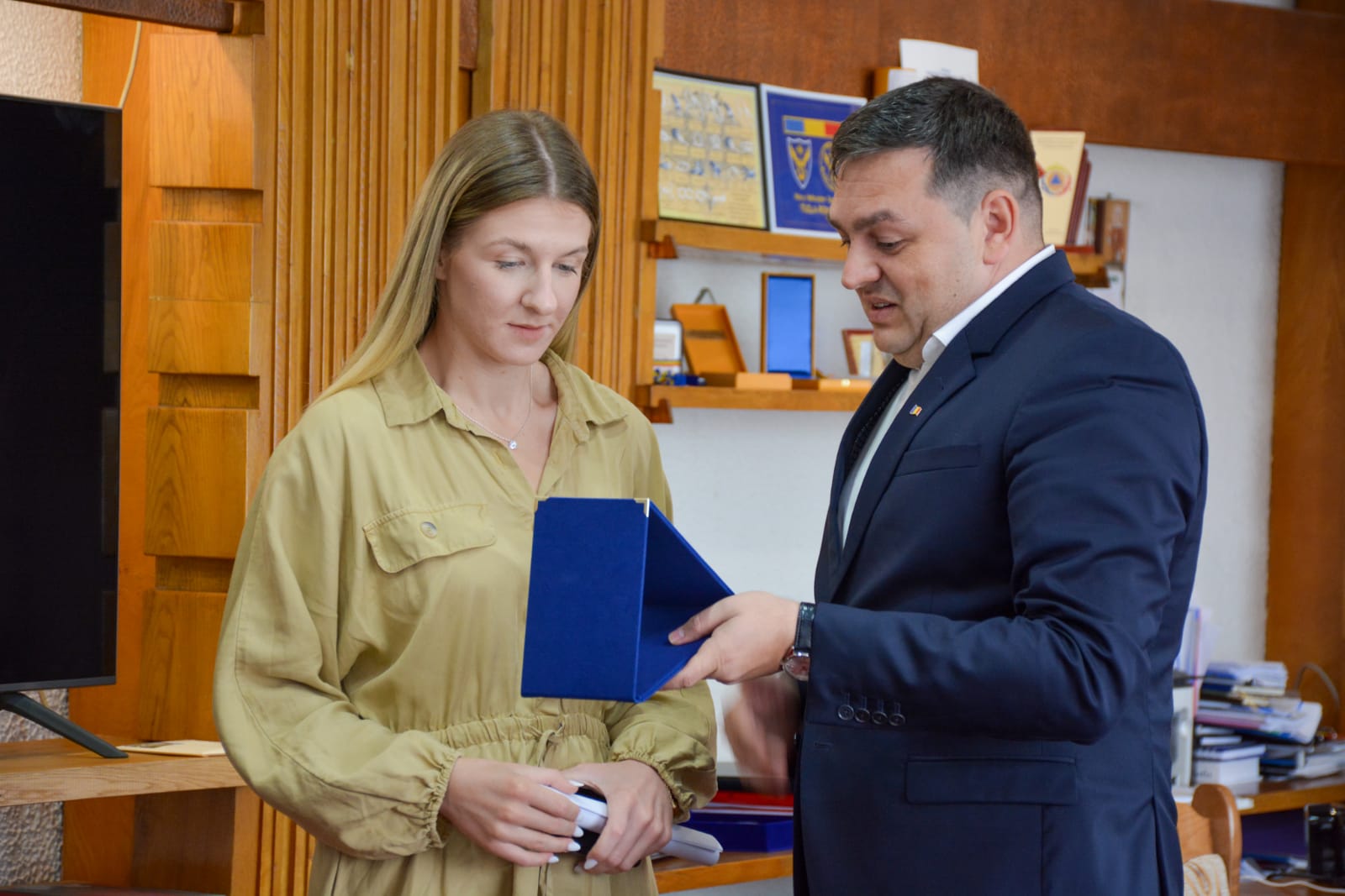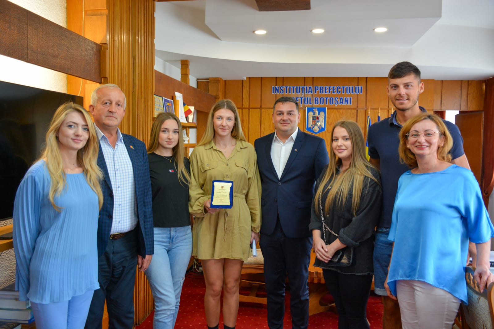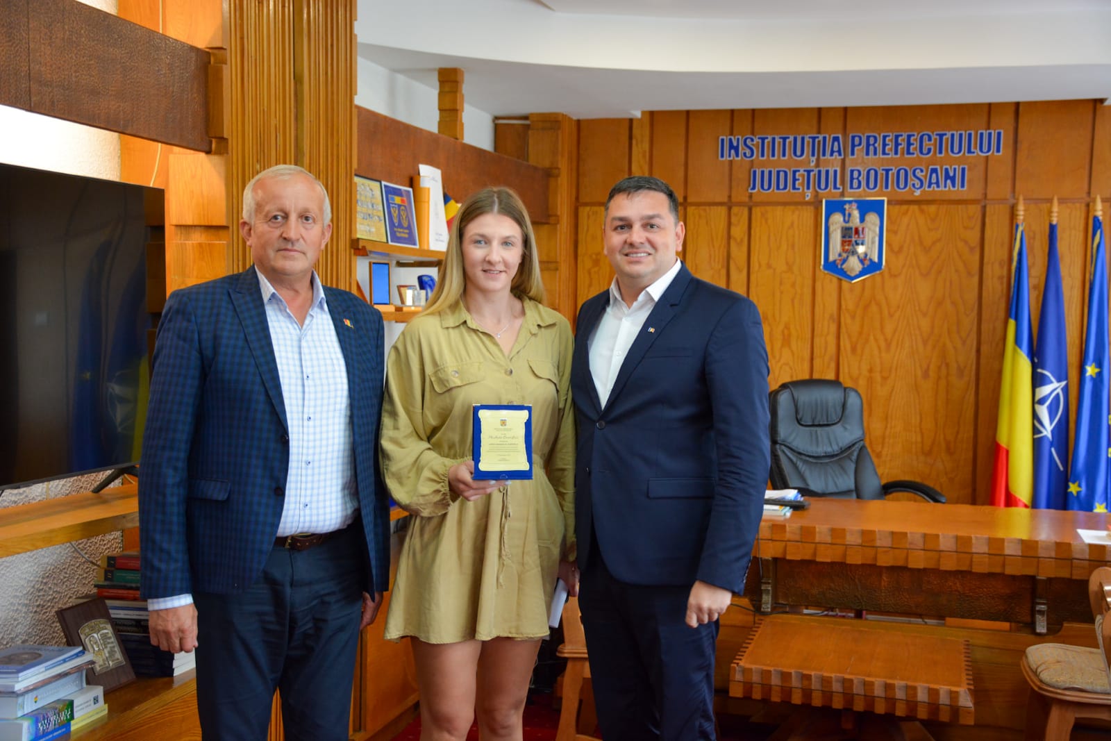 FOTO Canotoare de aur a Botoșaniului, premiată, astăzi, la Prefectură. Tânăra este cetățean de onoare al comunei sale natale