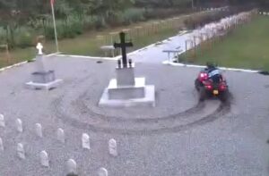 „Pentru cei doi tineri teribiliști, care stau rău cu respectul pentru eroii căzuți pe câmpul de luptă, ii anunț că evenimentul a fost raportat la numărul de urgență 112, deasemenea vă asigur ca numărul de înregistrare a ATV ului este surprins pe imagini! Nu tolerăm nesimțirea!”, a precizat primarul comunei, Victor Claudiu Bulboacă.