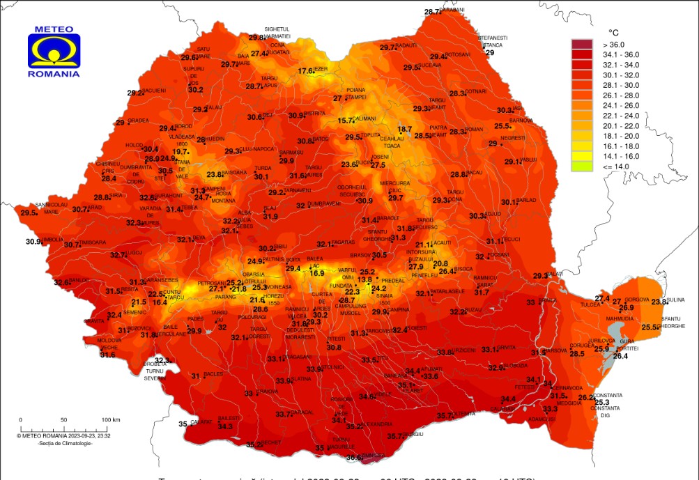 Sâmbătă a fost cea mai călduroasă zi de 23 septembrie din ultimii 60 de ani. E cel mai fierbinte echinocţiu de toamnă din istoria documentată meteorologic a României. Am avut temperaturi resimţite chiar şi de 38 de grade în sudul ţării, cu 15 mai mult decât ar fi normal în această perioadă.