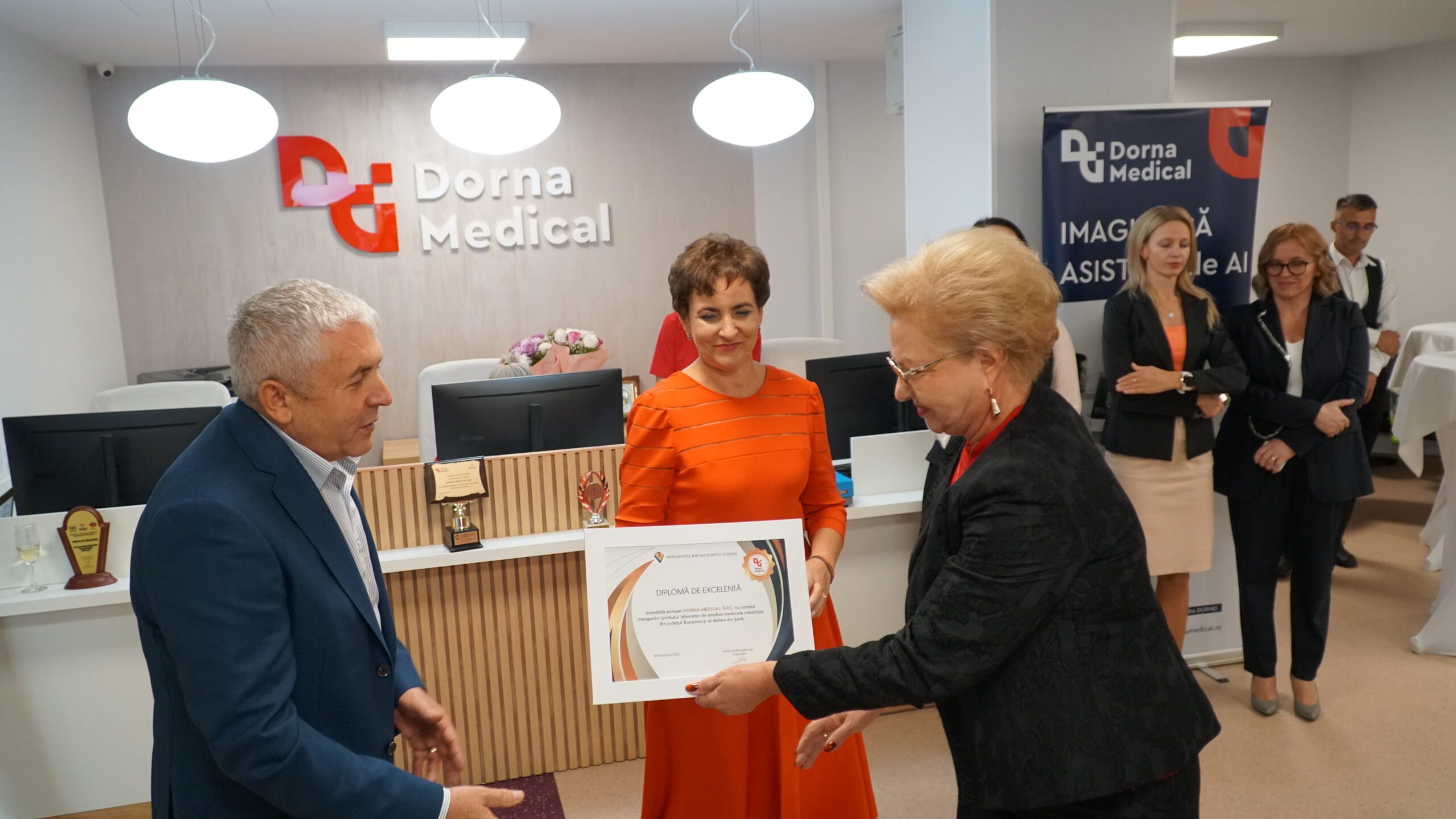 „Sunt extrem de fericită că după 25 de ani, când eram cu acest aparat și un microscop, asta a fost prima dotare a laboratorului Dorna Medical, iar acest aparat făcea cât trei Dacii pe vremea respectivă, iar noi am început când dobânda în bancă era 130%. [...]Am fost primul laborator din Vatra Dornei, al doilea în județul Suceava, laborator privat, ne-am dezvoltat foarte mult, iar de la această minimă dotare, care era pe timpurile respective, după 25 de ani avem bucuria de a fi pionieri pe zona robotizării în România. Am pus primul robot la Iași și continuăm cu investiția de la Suceava”, a declarat dr. Rodica Boca, manager Dorna Medical.