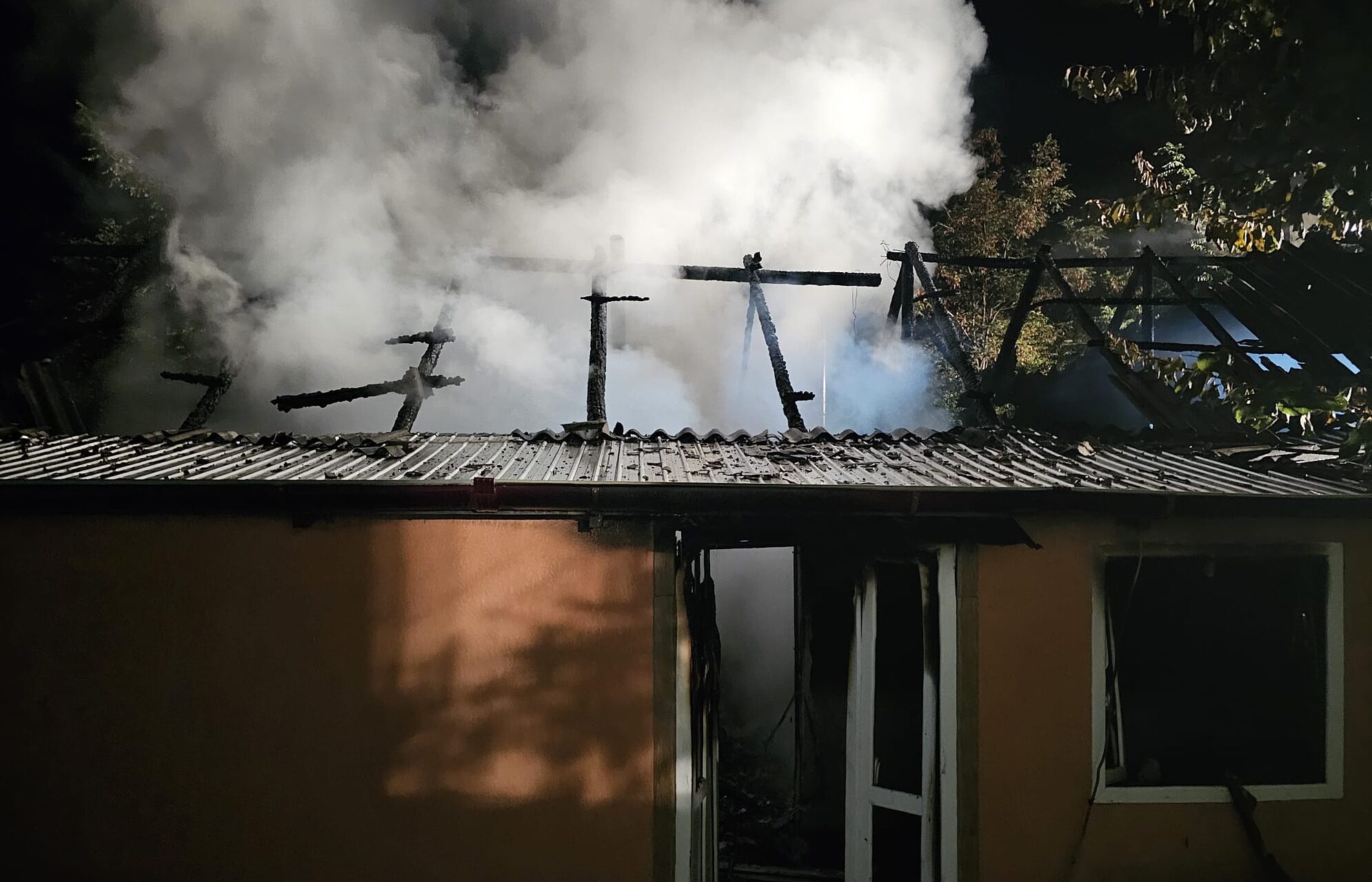 Flăcările au cuprins, aproape instantaneu, mai multe bunuri din interior și s-a extins la acoperiș. Puțin mai târziu, în încăpere a explodat și butelia.