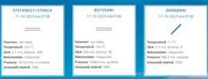 Aceeași valoare a fost consemnată și al Stația Meteo din Stânca- Ștefănești, în timp ce în nordul județului, la Darabani, au fost 1,1 grade Celsius. Temperaturile exterioare au generat apariția brumei.