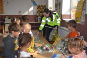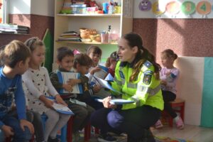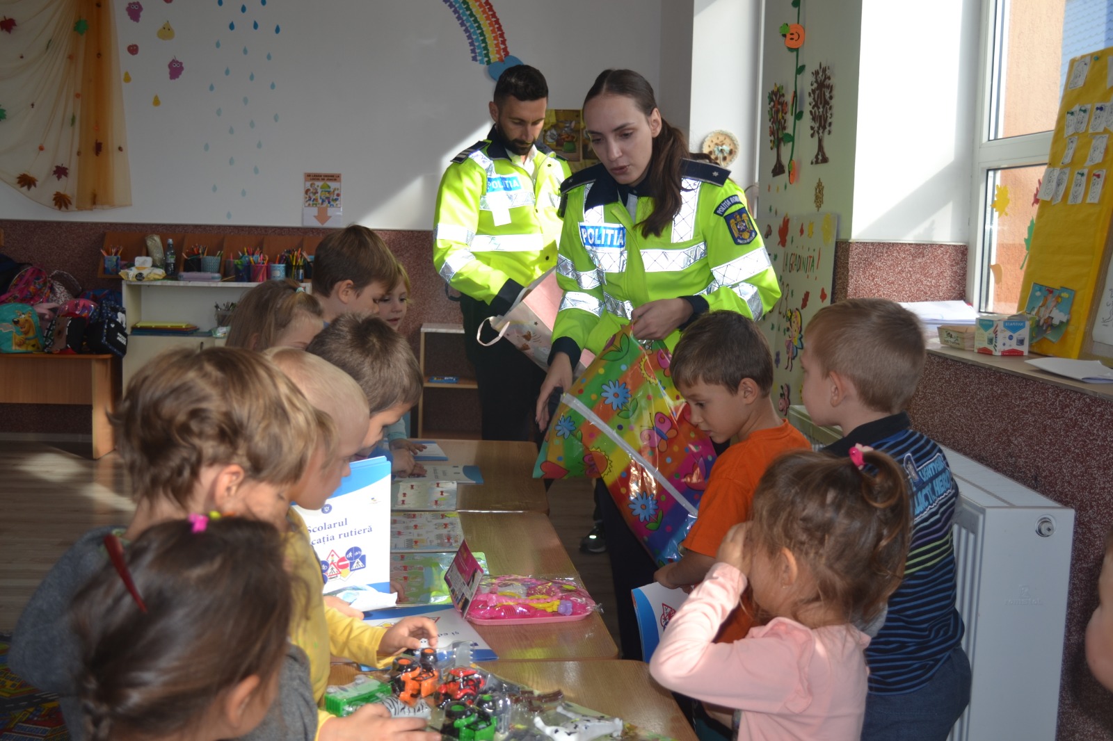 Polițiștii le-au prezentat copiilor regulile de circulație și importanța respectării acestora pentru prevenirea implicării în evenimente rutiere nedorite.