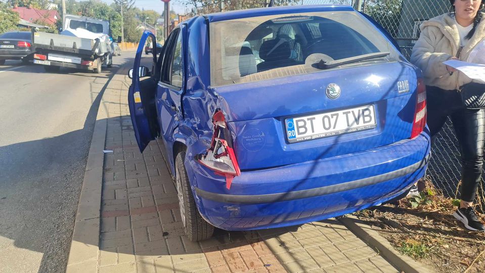 Un accident rutier a avut loc joi, în municipiul Botoșani. Două mașini au fost avariate din cauza unei șoferițe neatente. O femeie circula cu autoturismul albastru pe strada Puskin din municipiul Botoșani, iar la intersecția cu strada Petru Rareș nu a acordat prioritate de trecere unui autoturism care circula regulamentar, cele două mașini intrând în coliziune.