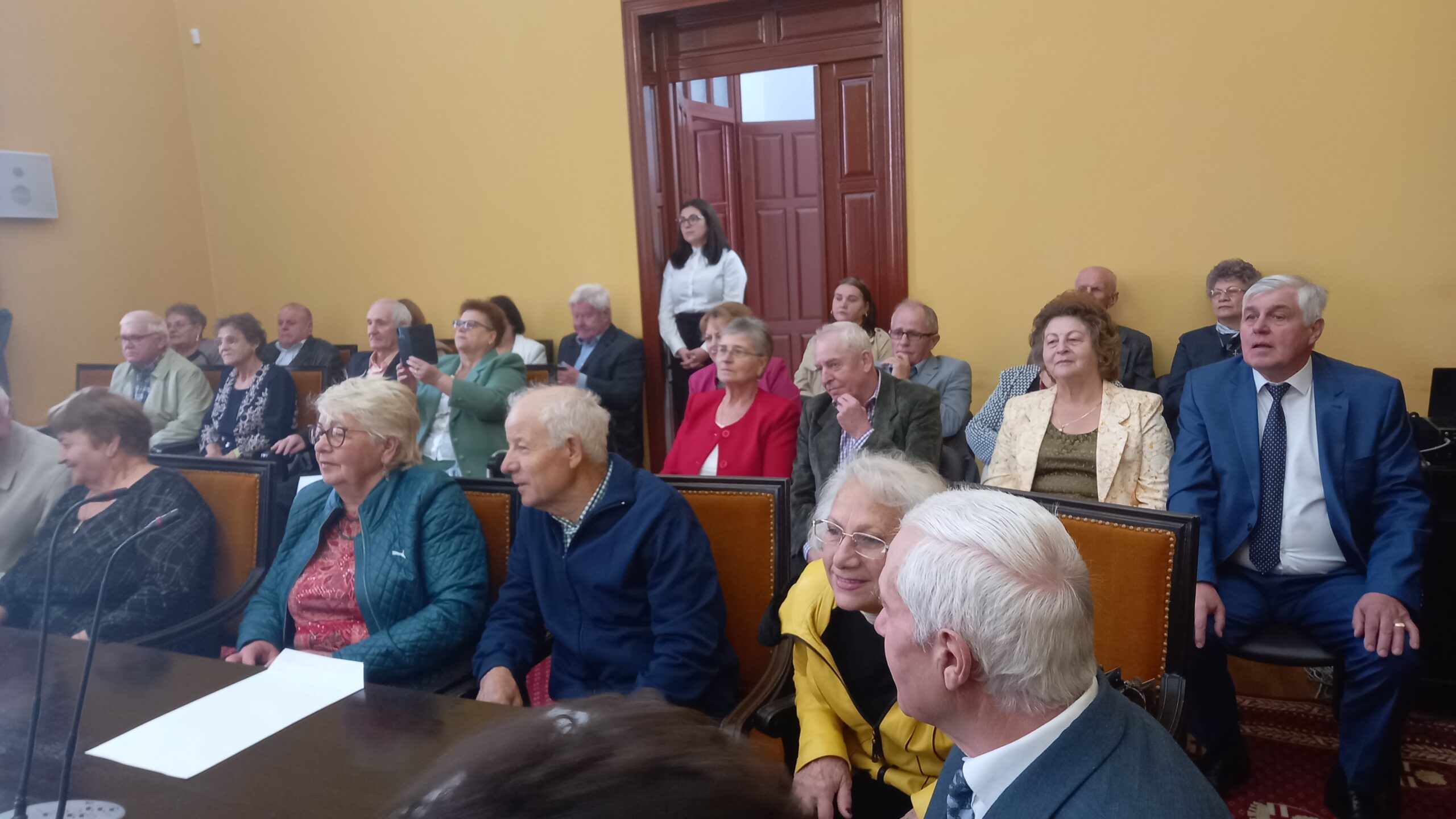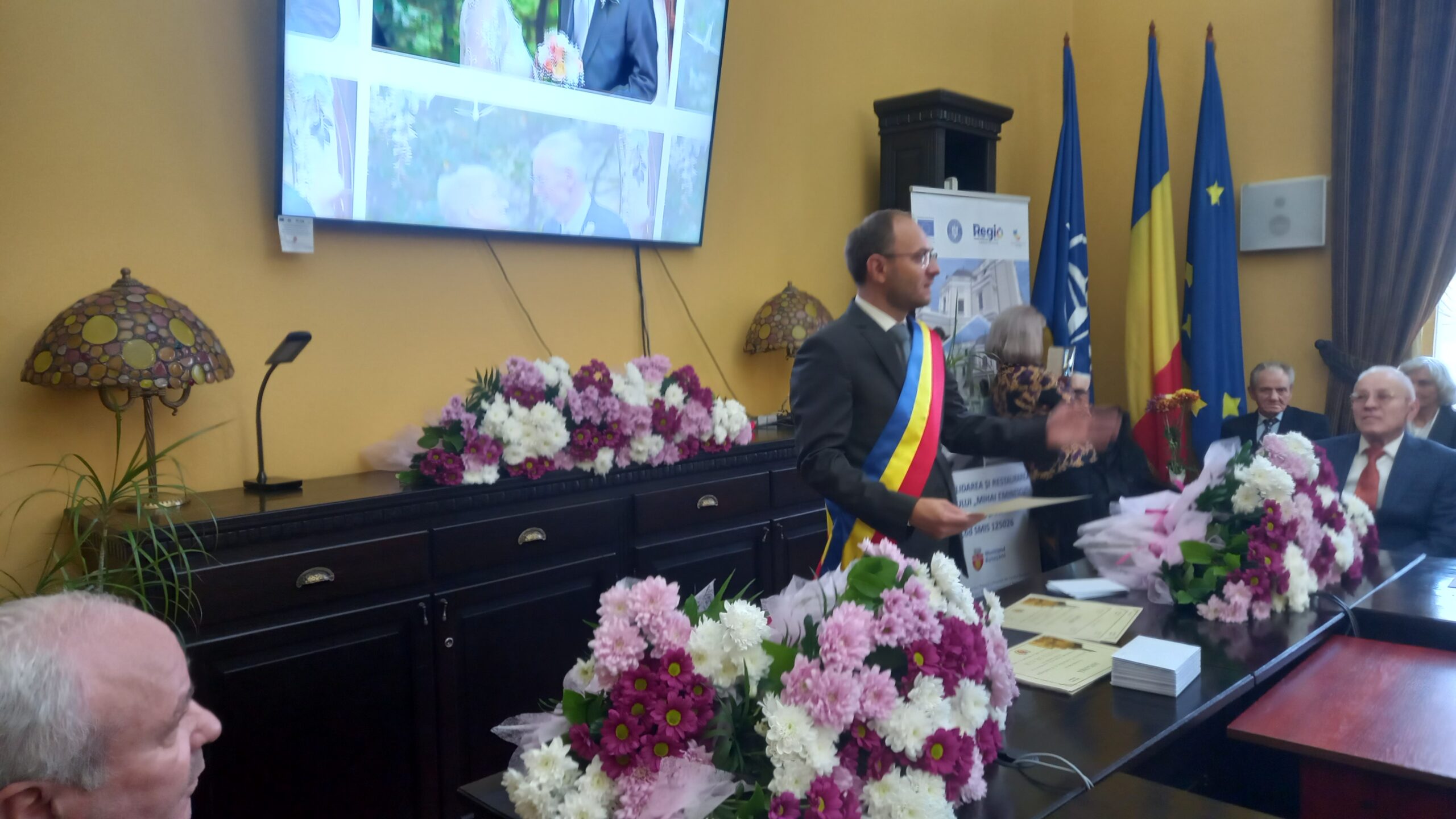 Momente emoționante, luni, la Primăria municipiului Botoșani. Un număr de 34 de cupluri, care au împlinit 50, respectiv 60 de ani de căsătorie, au fost premiate de primarul Cosmin Andrei. Patru dintre cupluri au sărbătorit nunta de „diamant”, iar restul nunta de „aur”.