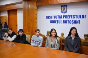Elevii clasei a XI-a A de la Colegiul Național ”Mihai Eminescu” Botoșani, însoțiți de profesor Daniela Epurianu, au asistat astăzi la ședința Colegiului Prefectural al județului Botoșani. Ei au putut vedea cum se desfășoară o zi din activitatea Instituției Prefectului.
