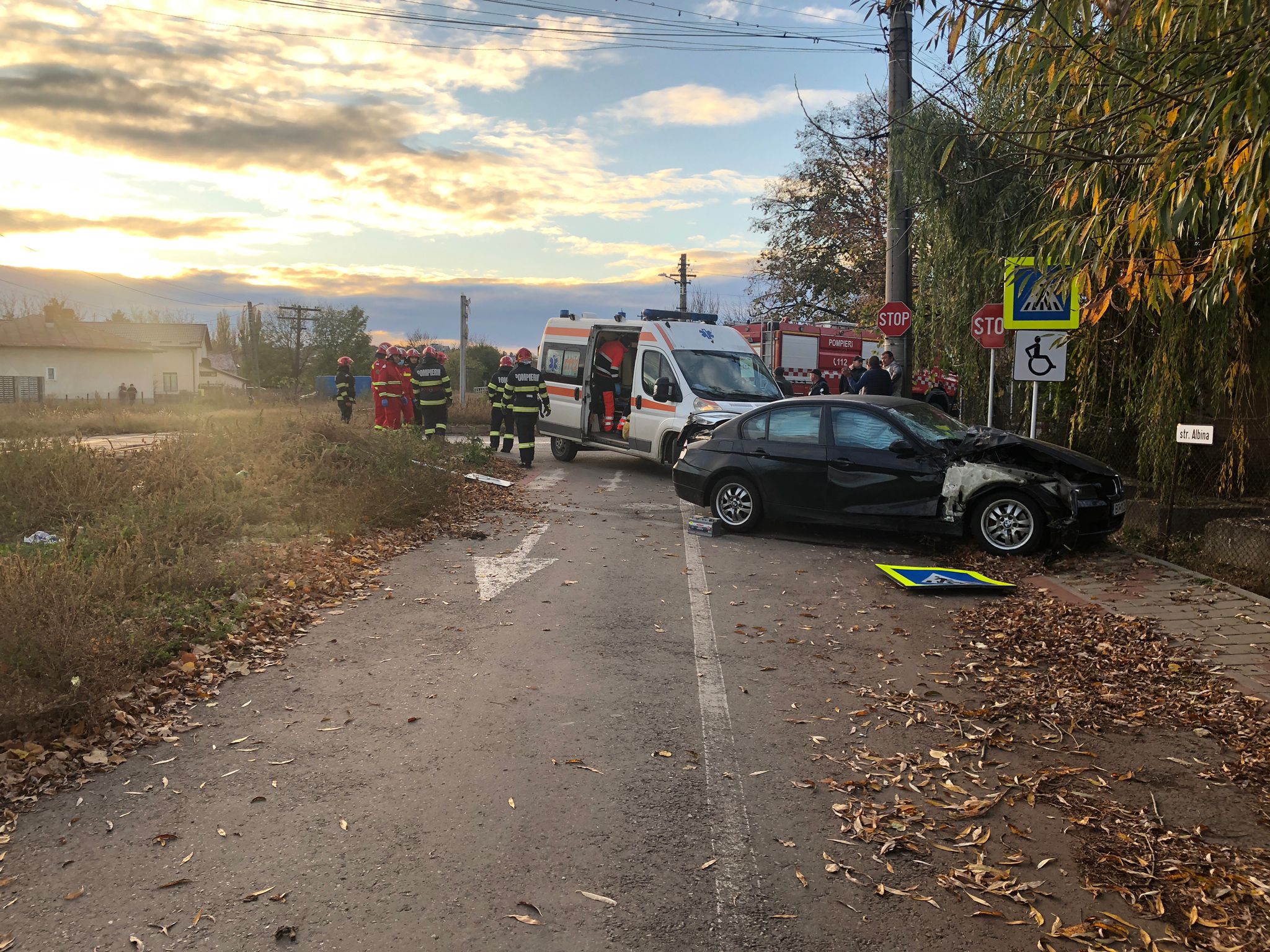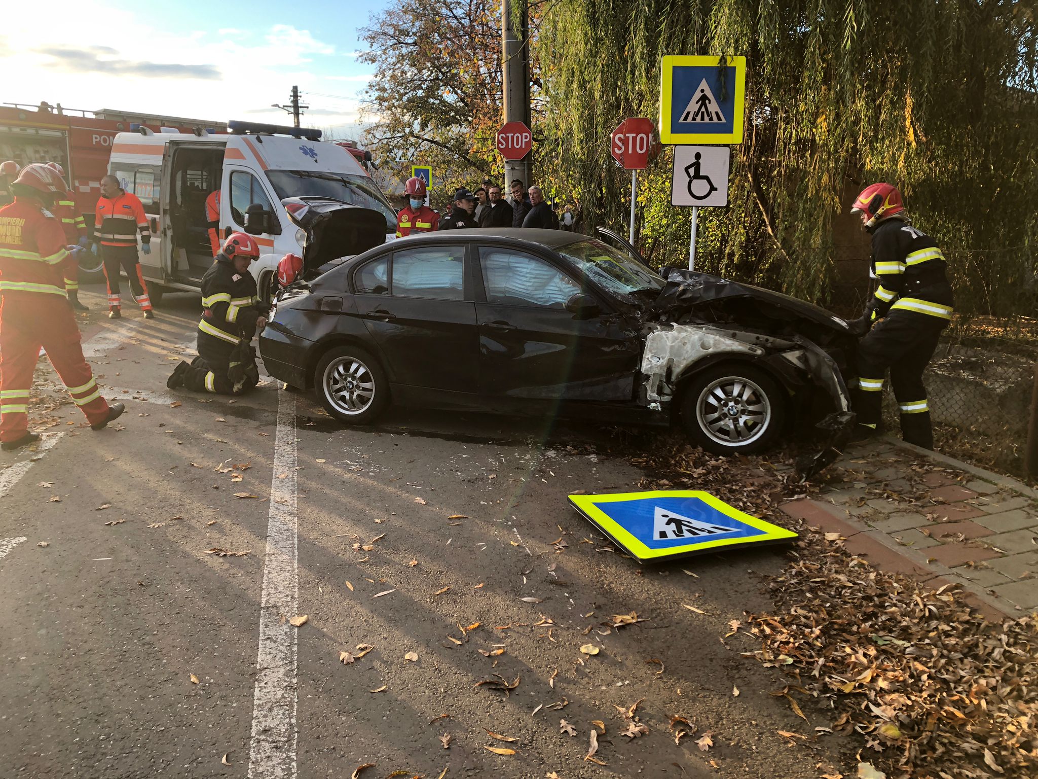 În schimb, conducătorul mașinii, un bărbat de 30 de ani, a fost preluat de echipajul SAJ, fiind transportat la spital pentru îngrijiri medicale de specialitate. Pompierii au acționat pentru prevenirea izbucnirii unui incendiu.