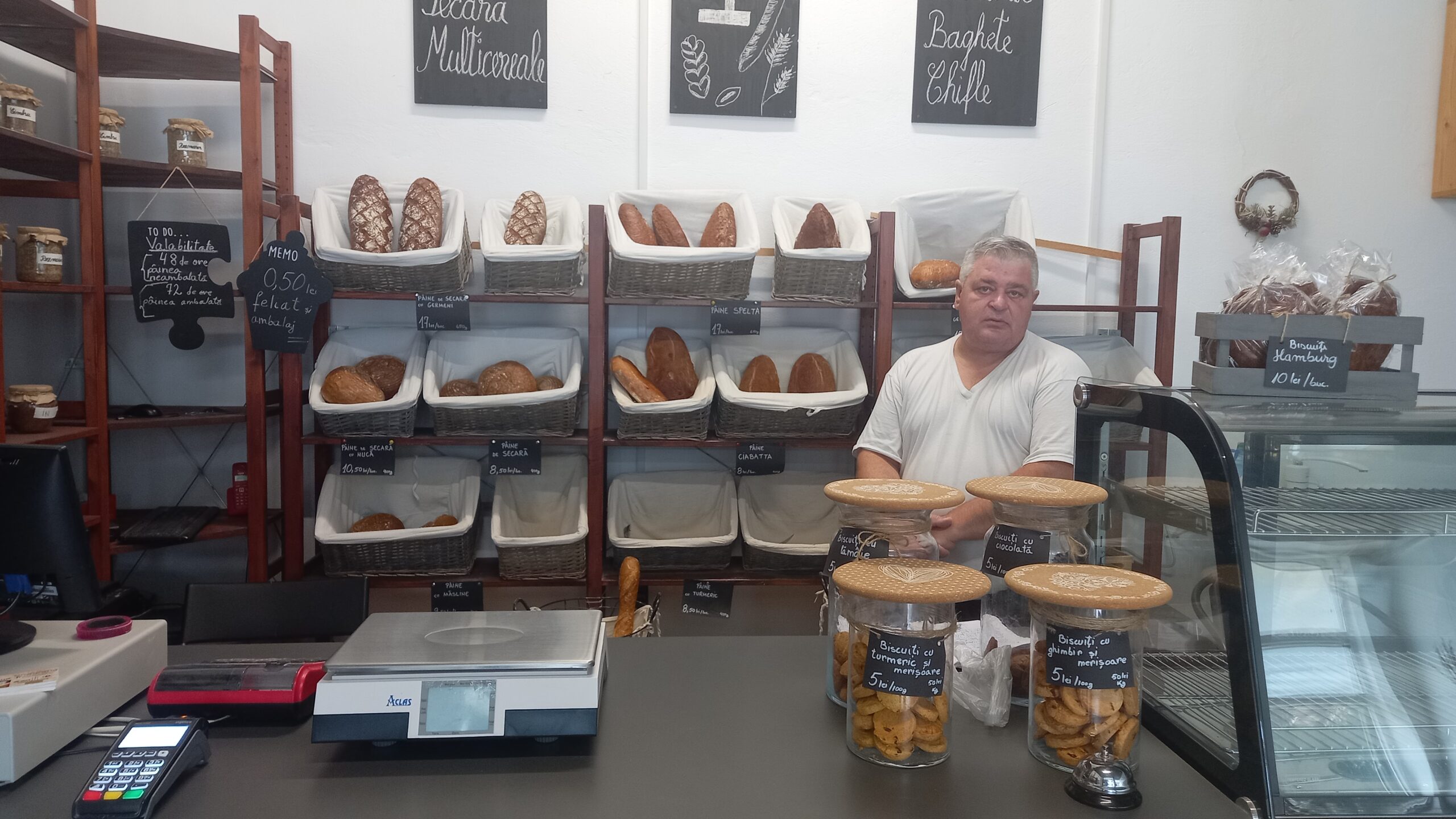 ”Suntem o brutărie artizanală, singura din județ, cu mai multe sortimente de pâine fără E-uri, fără aditivi alimentari, fără amelioratori, în special cu maia. Sunt doar anumite produse care au și un pic de adaos din drojdie. Toată lumea care vine la noi, în general se fidelizează, chiar dacă vin mai rar sau mai des. Este o pâine sănătoasă, mai ales pâinea Spelta care este cu dovleac, floarea soarelui, germeni de grâu hidratat, făină din grâu dur Spelta, fără drojdie, care este cumpărată, în special, de cei care au diabet, pentru că le ține glicemia jos. Mai avem pâinea din germeni de secară care este o pâine foarte deasă și cu un gust puțin acrișor, este gustul pâinii de altădată, cum se făcea pe vatră, pâinea de secară simplă, pâinea Ciabatta, care a fost inventată de un italian la concurență cu bagheta franțuzească, pâinea Cunzatu, o pâine italiană cu rozmarin, oregano, cimbru, ulei de măsline, Avem pâine cu ceapă și germeni de secară, mai multe sortimente pe care le rotim în funcție de cererea clienților. Noi suntem pe piață de patru ani și două luni , iar în funcție de pandemie și război am avut și suișuri și coborâșuri”, a declarat administratorul brutăriei, Haivei Laurentiu.