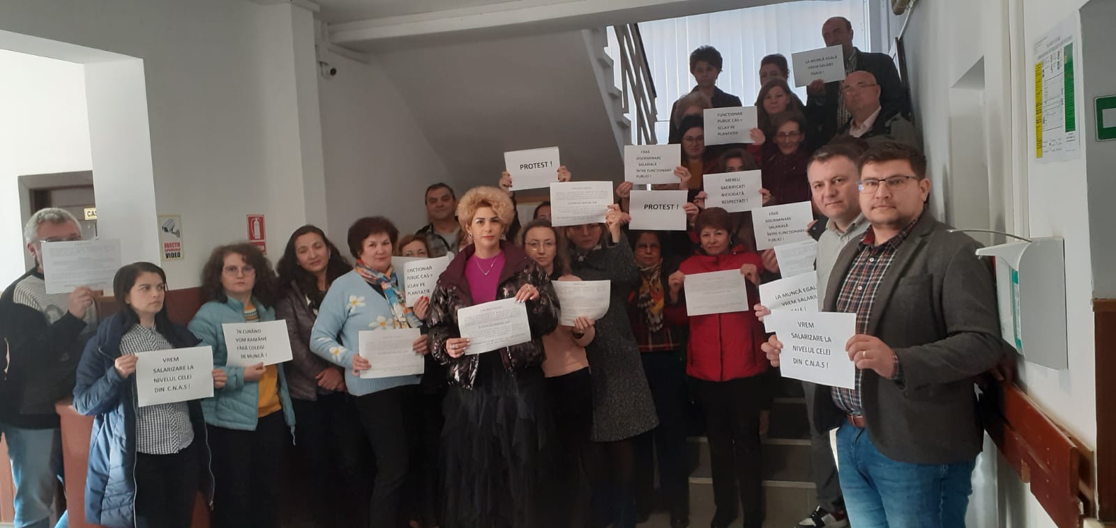 ”Fără discriminare salarială între funcționari publici!”, ”Funcționar public CAS, sclav pe plantație!” ”La muncă egală, vrem salarii egale!” ”Vrem salarizare la nivelul celei din CNAS!” sunt doar câteva din mesajele transmise de protestatari. Oamenii sunt nemulțumiți că fac ore suplimentare și că salariile nu au mai fost majorate din 2018, fiind cu mult mai mici decât cele de la Casa Națională de Asigurări de Sănătate.